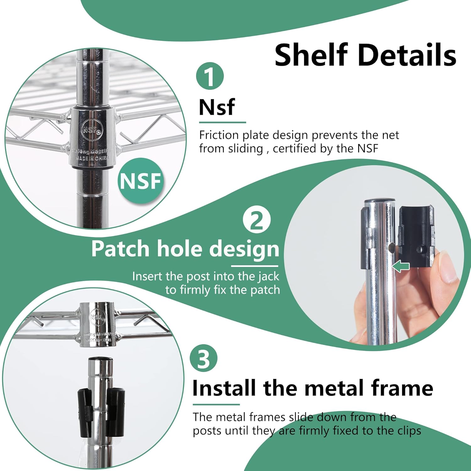 FDW 24" L×14" W×60" H Wire Shelving Unit Metal Shelf with 5 Tier Layer Rack Strong Steel for Restaurant Garage Pantry Kitchen Garage,Chrome