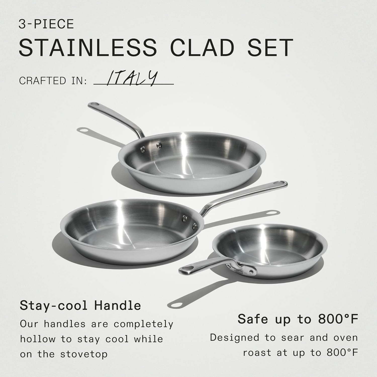 Made In Cookware - 3-Piece (Includes 8",10",12") Stainless Frying Pan Set - 5 Ply Stainless Clad - Professional Cookware - Crafted in USA - Induction Compatible