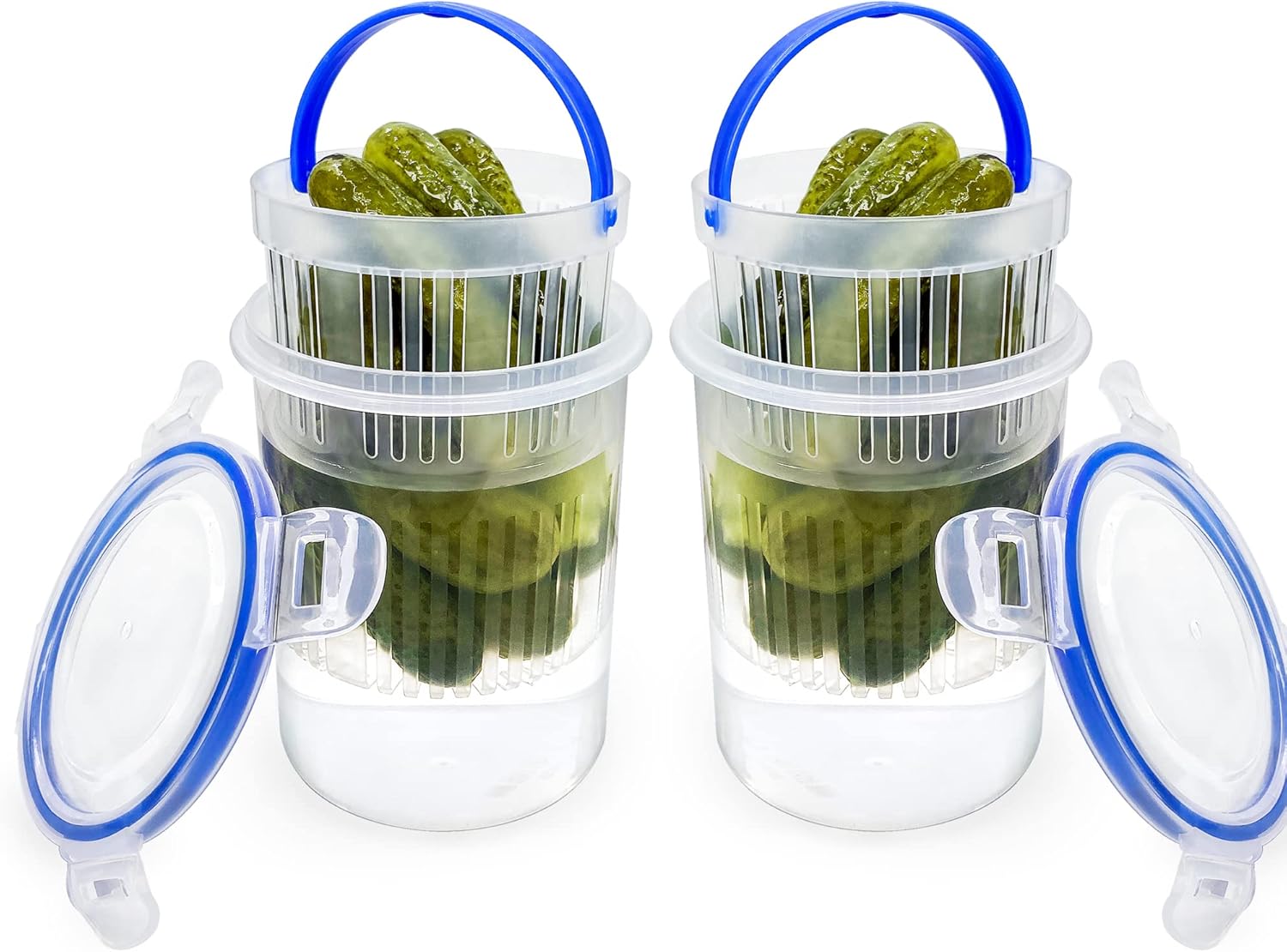 Pickle Jar 24oz 2Pack Pickle container with strainer Pickle Holder Keeper Lifter, pickle storage container pickle strainer, Flip Jar with Leak Proof and Lock It Lid