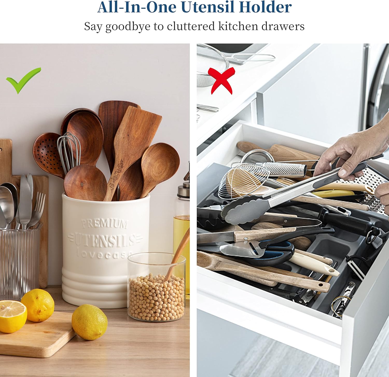 - 【LONG-LASTING USE】The texture of this utensil holder is anti-slip and anti-scratch. You can easily keep it clean with a wet cloth or wash it with a bit of soap. It can withstand the rigor of fast-paced kitchen and keep kitchen essentials at hand in this countertop organizer.