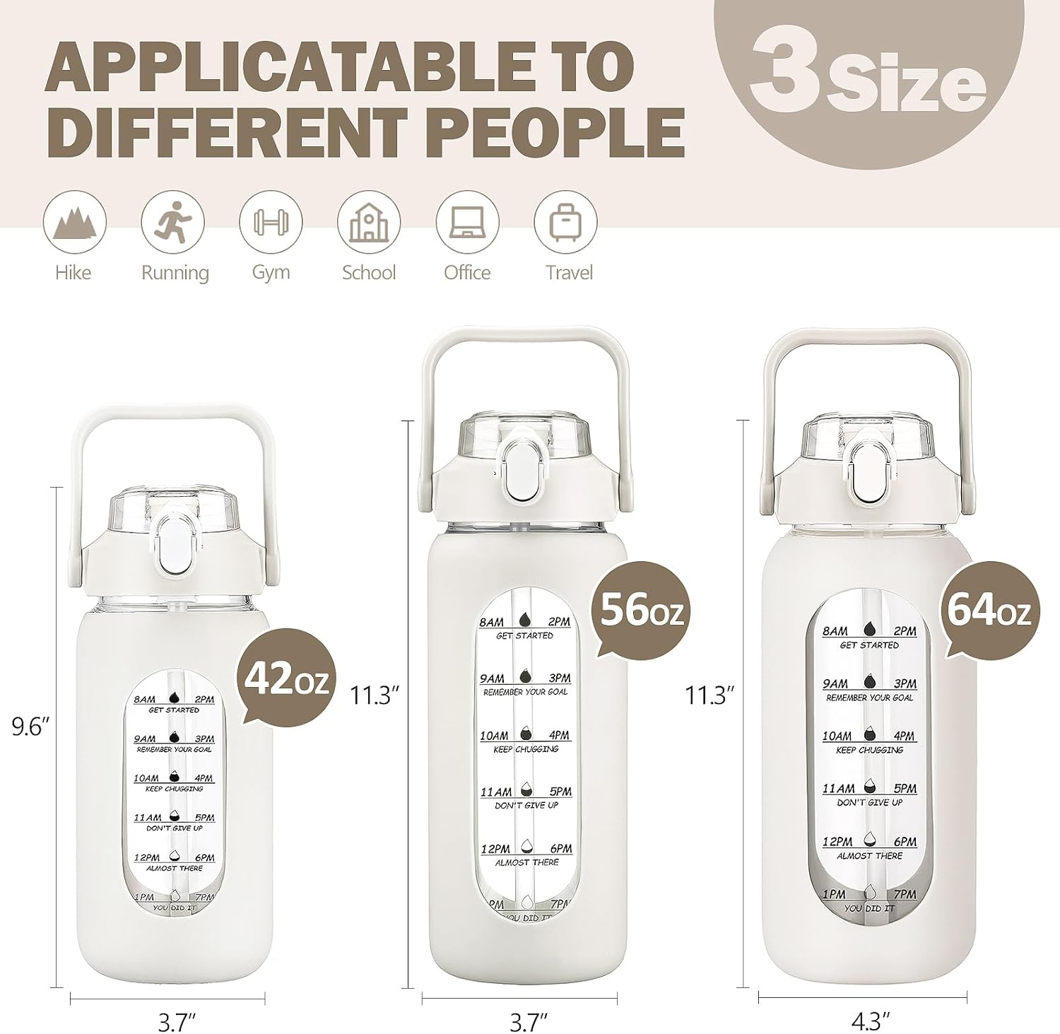 kytffu 42oz Glass Water Bottles with Straw, Motivational Glass Bottle with Silicone Sleeve and Time Marker, Leakproof Large Glass Water Jug for Gym Home Office,White