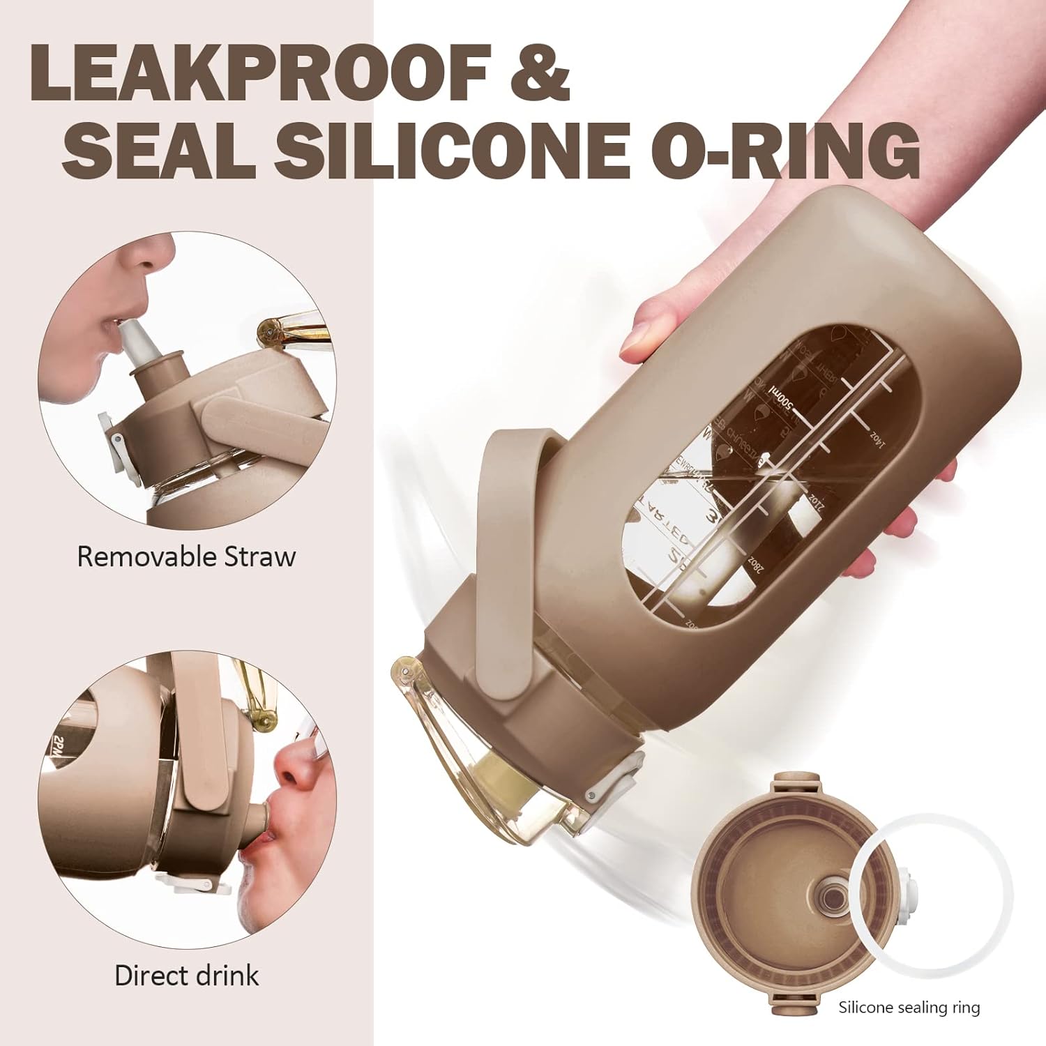 - ❤High-Quality Borosilicate Glass Bottle- This large motivational water bottle is made of odorless, quality, borosilicate glass. Straw and lid are made of food-grade PP, BPA-free and eco-friendly.