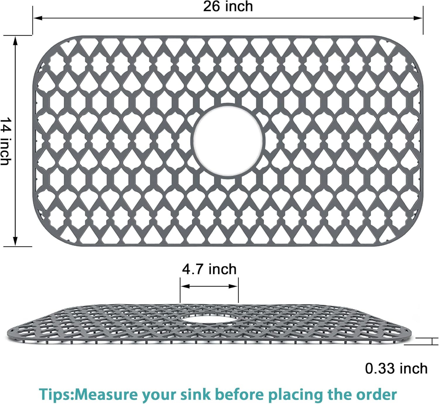 - Large Size & Flexiable - The size of our silicone sink mat is 26 ×14 inches. The silicone sink mat is flexiable that easy to fit the bottom of the kitchen sink. The silicone sink mat not only can be sink protectors for kitchen sink, but also can be a drying mat or dish mat. It is an essential item for the daily cleaning of the kitchen.