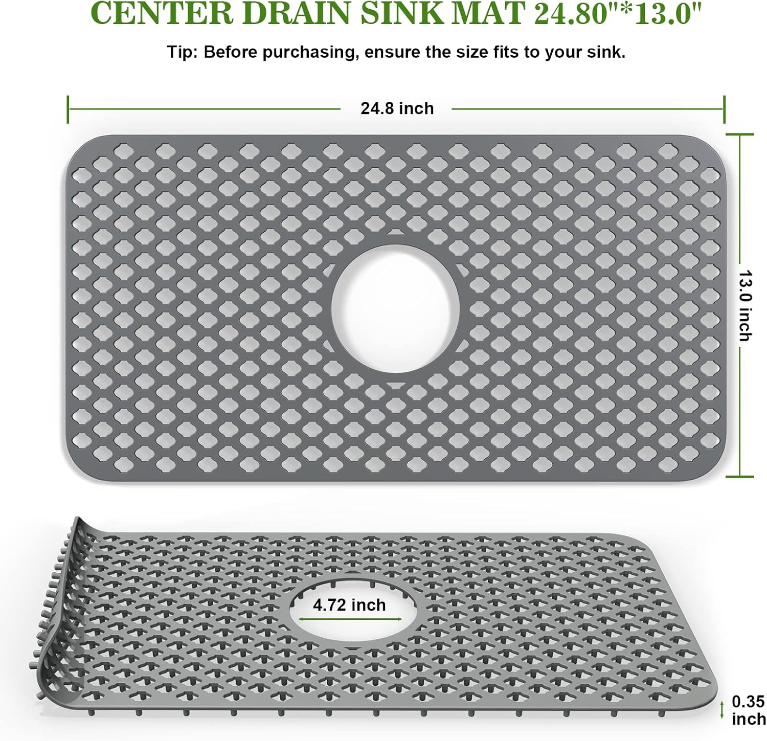 - Central Opening Fits Most Sinks - The kitchen sink protector has a central opening so you can easily remove the drain cover for quick drainage. No need to worry about water remaining on the silicone faucet pad or countertop. They can work as a sink protector or a dish drying mat under the sink.