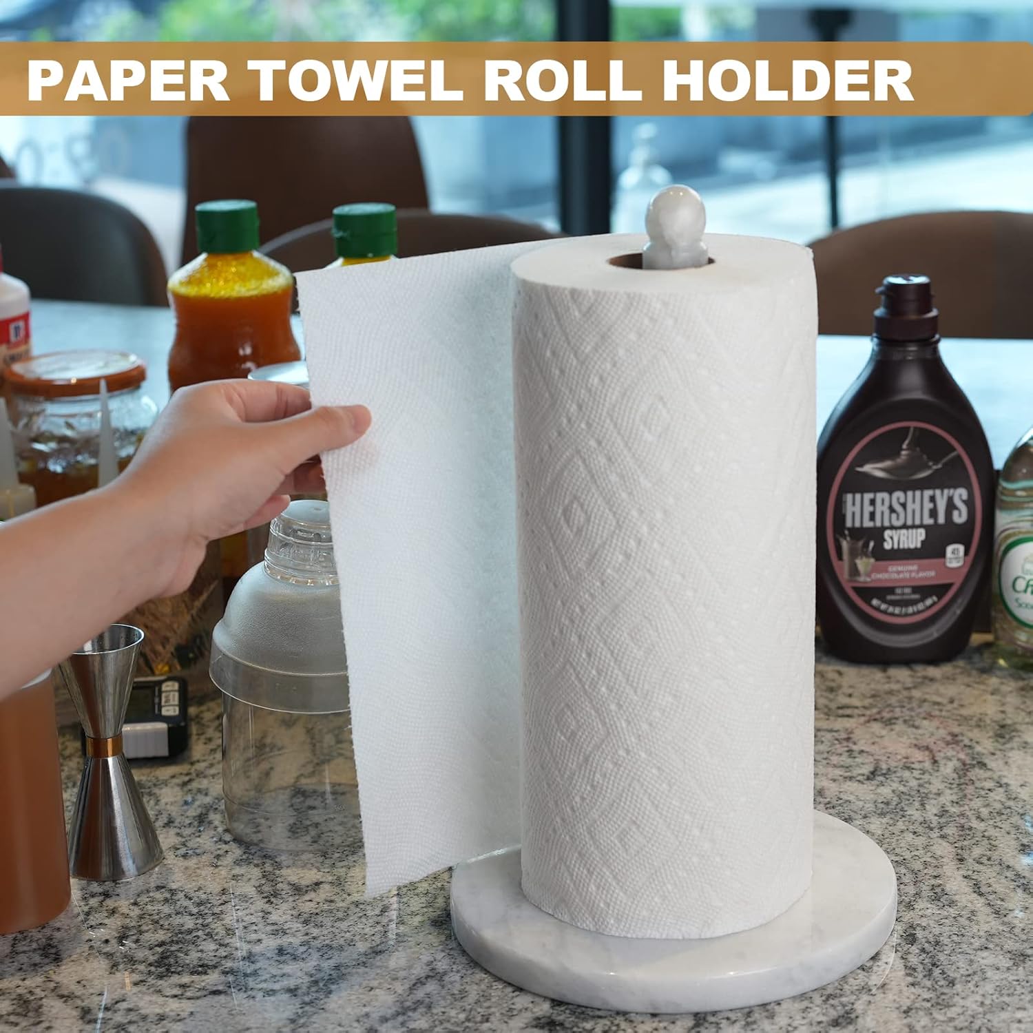 - Sturdy and Durable: Kovilleโs high quality paper towel holder(4.5pounds), the upgraded base(7") is made of heavy marble polished, smooth and delicate touch surface, keep the paper towel holder super sturdy and won't tip over.