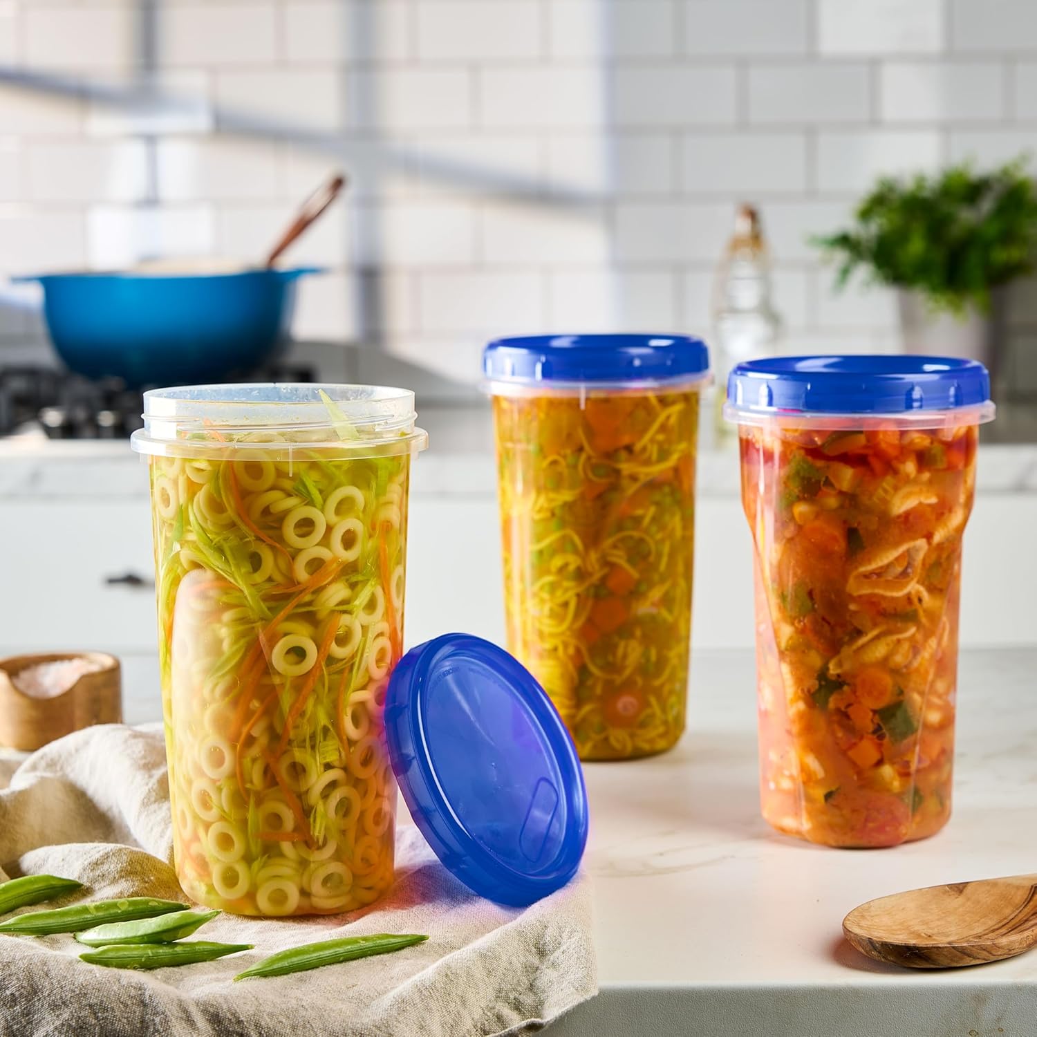 PLASTICPRO 12 Pack Twist Cap Food Storage Containers with Blue Screw on Lid- 48 oz Reusable Meal Prep Containers - Large Freezer Containers Microwave Safe Blue Plastic Food Storage