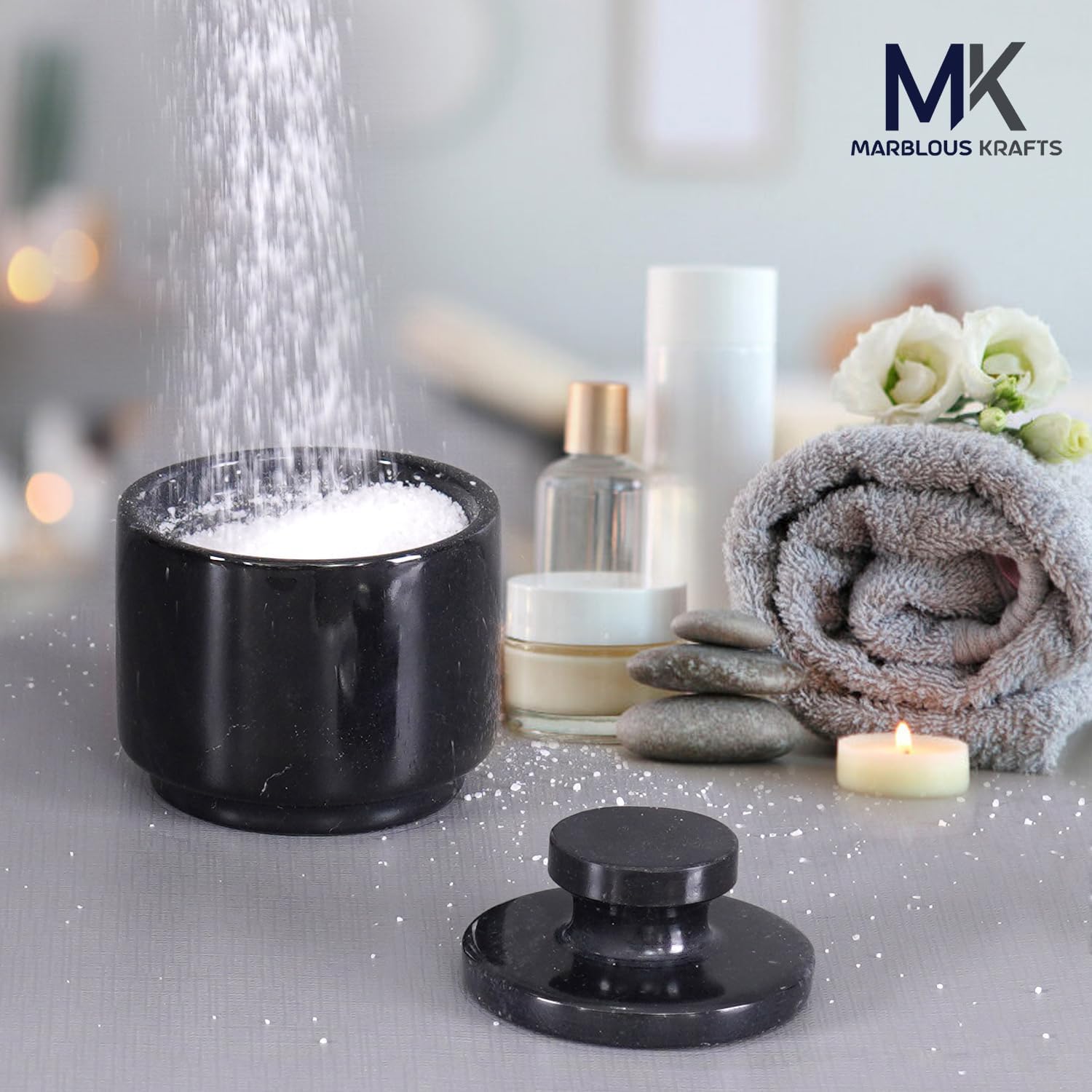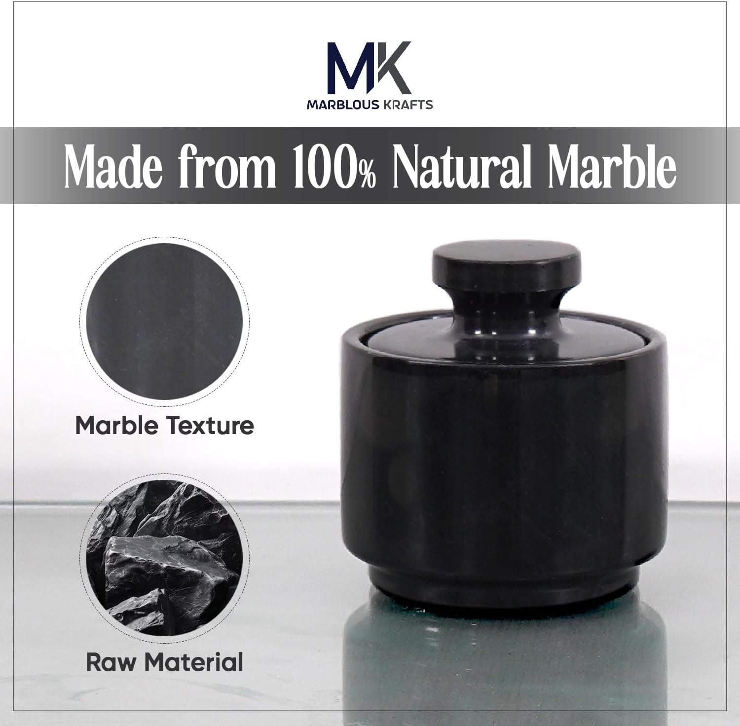 Marble Salt Cellar with Lid 3" Inch Black Spice Jar & Stone Salt Container For Kitchen Countertop, Modern Sugar Bowl