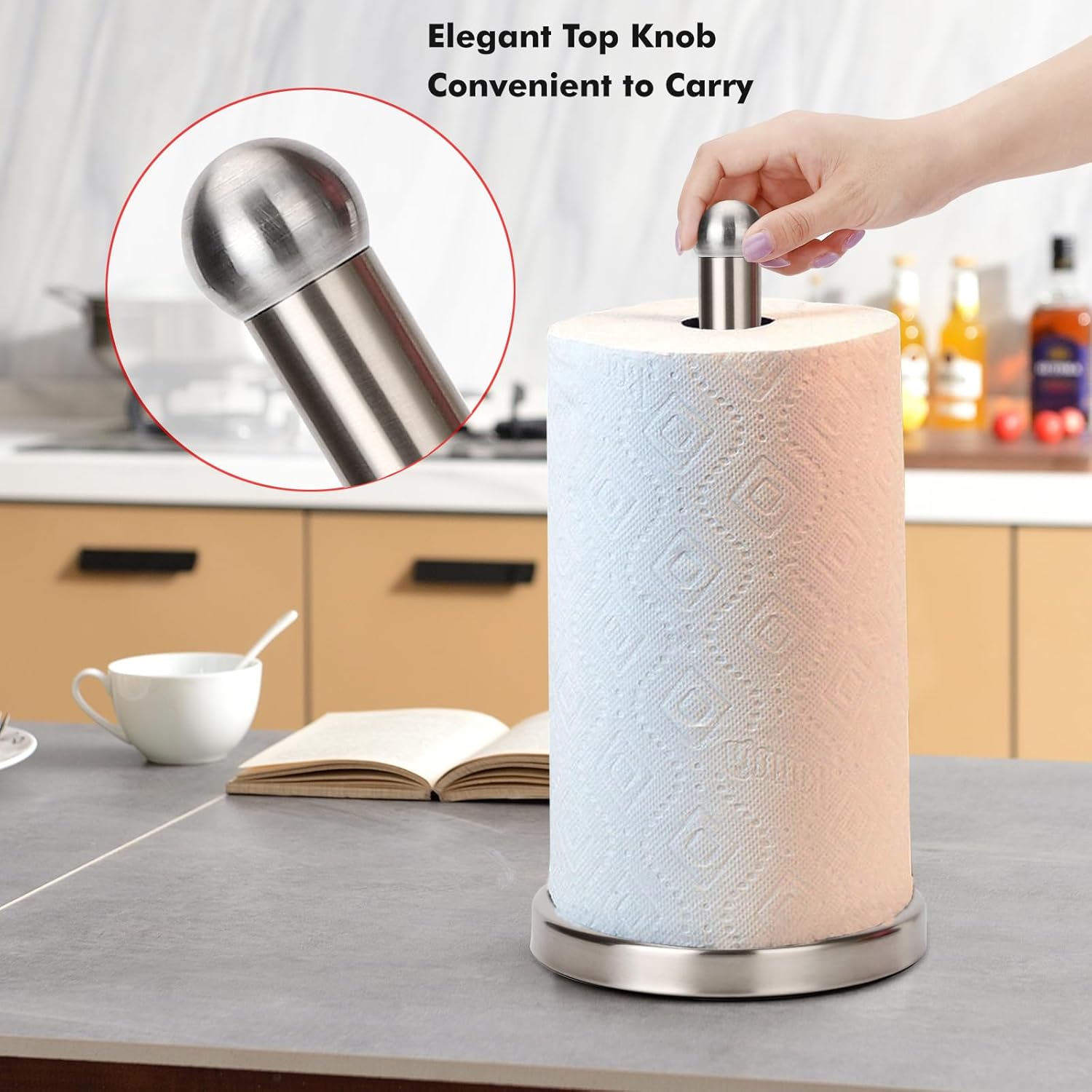 - Paper Towel Holder Countertop, Stainless Steel Standing Paper Towel Roll Holder for Kitchen Bathroom, with Weighted Base for One-Handed Use