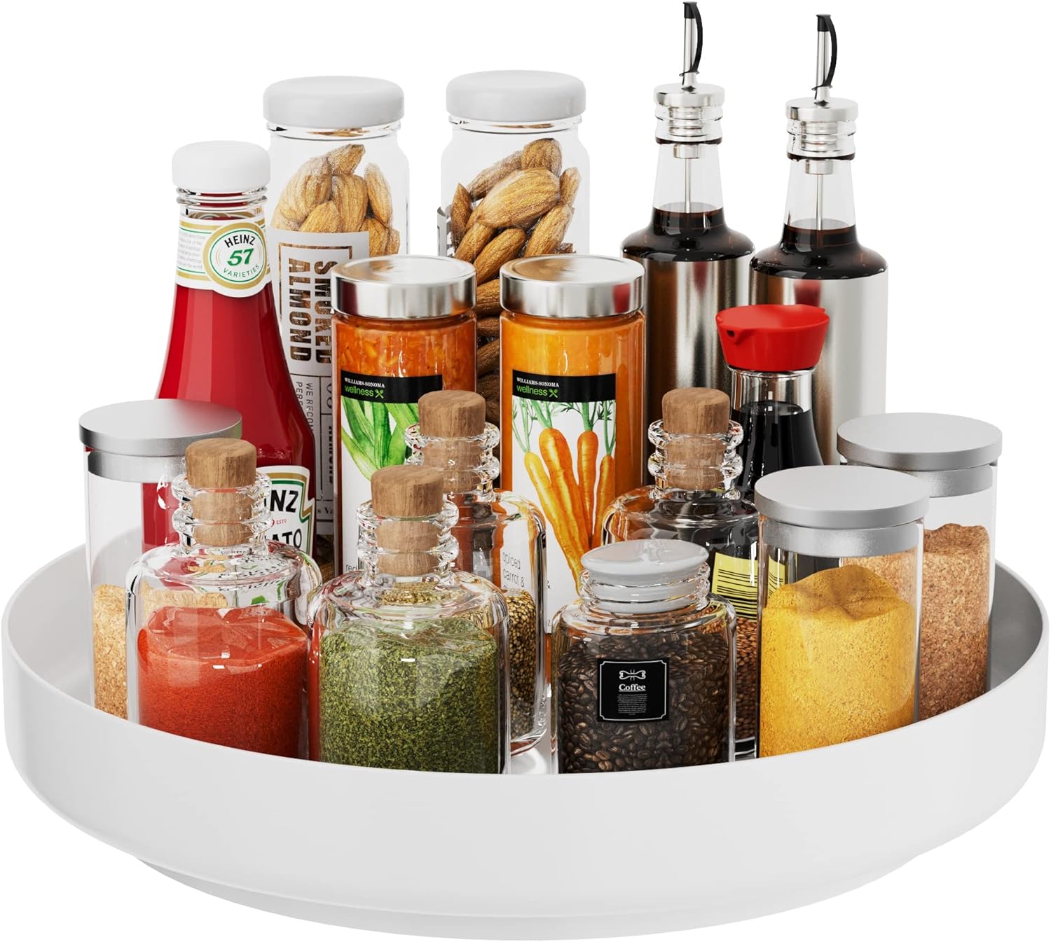 Ovicar Lazy Susan Cabinet Organizer - 13 inch Metal Turntable Lazy Susan for Kitchen Spice Rack Pantry Cupboard Bathroom Countertop Refrigerator Table Storage, White