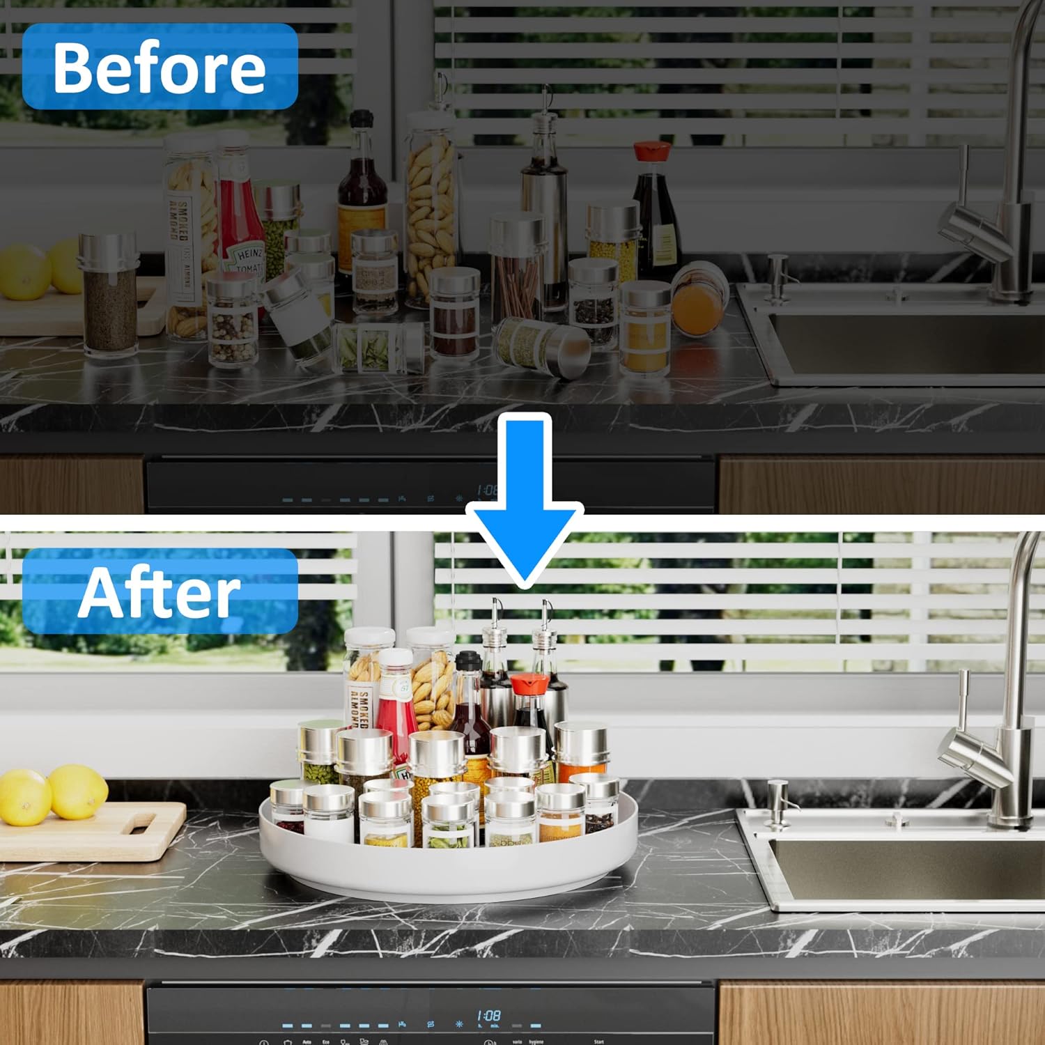 - Large Space Organizer:This lazy susan organizer measures 13 inch,providing more storage capacity in your deep base cabinets,upper shelves and cluttered corner countertop , Making the most of the limited space in your home to keep things neat and organized.
