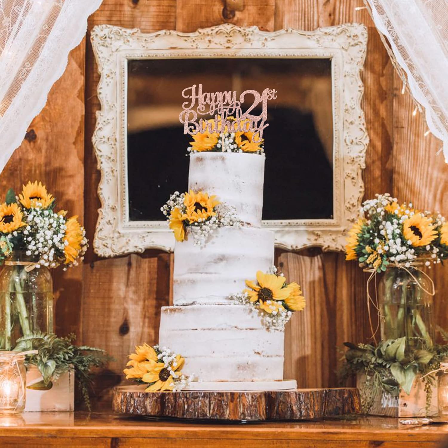 1 PCS Happy 21st Birthday Cake Topper - Glitter Cheers to 21 Years - Fabulous Cake Decoration for 21st Birthday Theme Party - Rose Gold