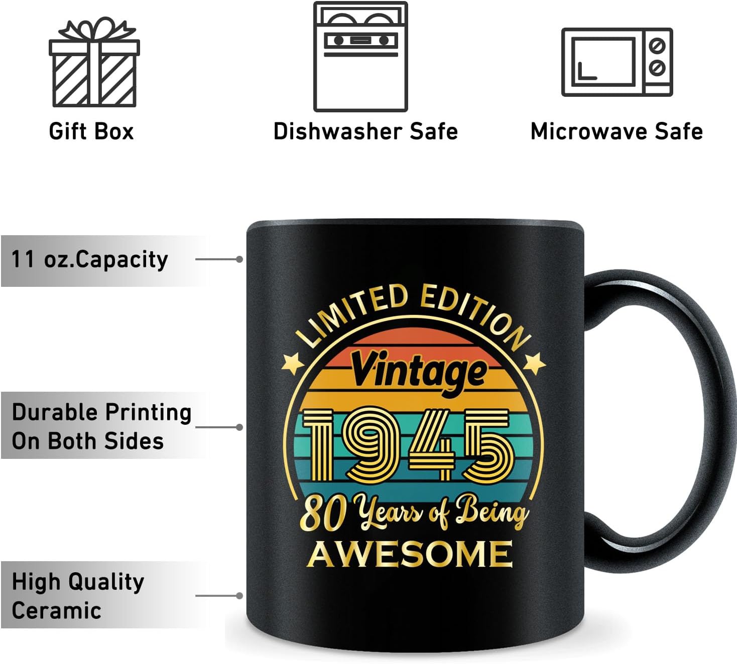 - Nostalgic Design: Featuring a stylish and timeless design, this mug highlights the significance of the year 1945. Ideal for those who appreciate a touch of nostalgia, it's a unique and thoughtful gift that stands out from the ordinary.