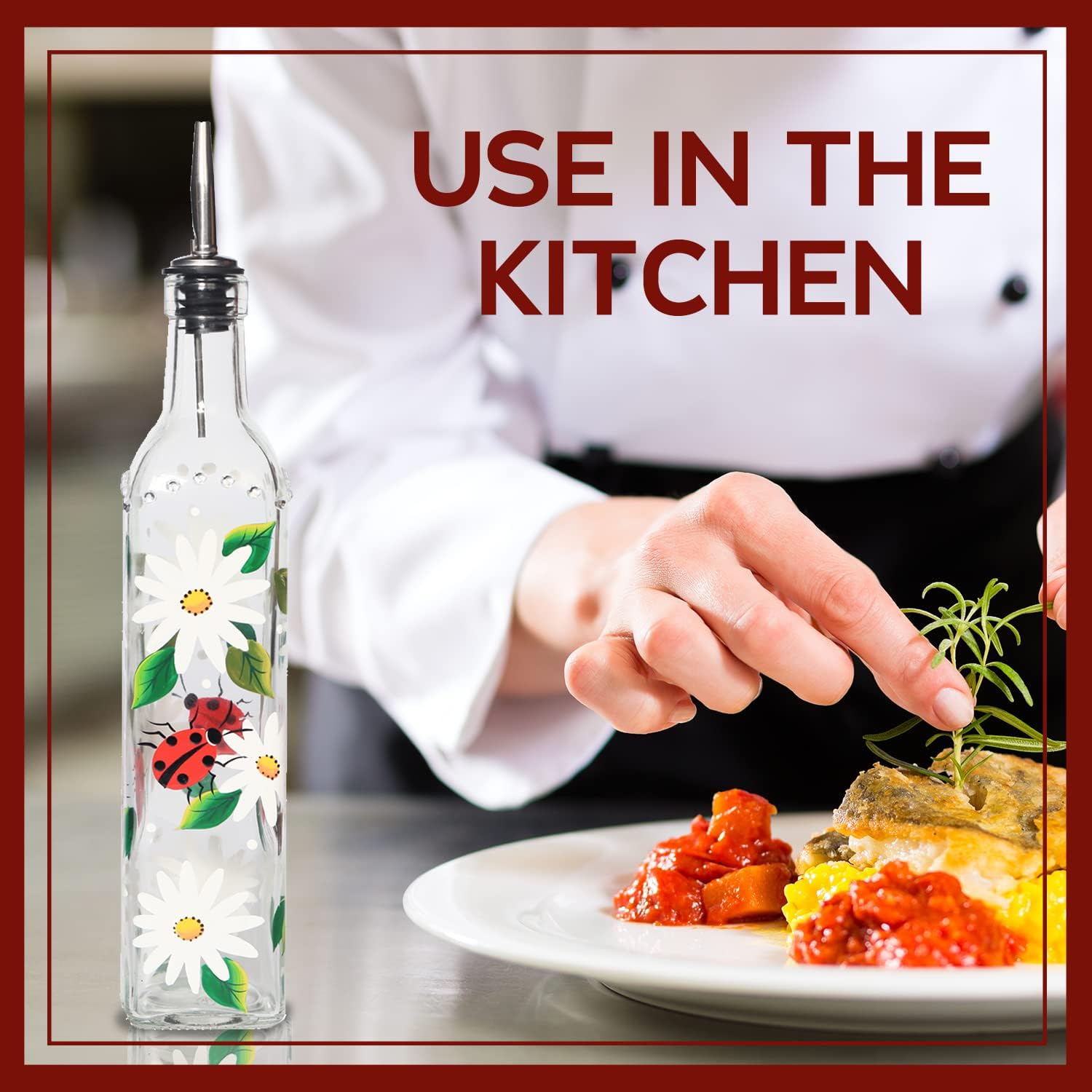 - Elegant Hand-Painted Design: YIYUKODO's glass olive oil bottle features a stunning hand-painted pattern, adding a touch of artistry and sophistication to your kitchen.