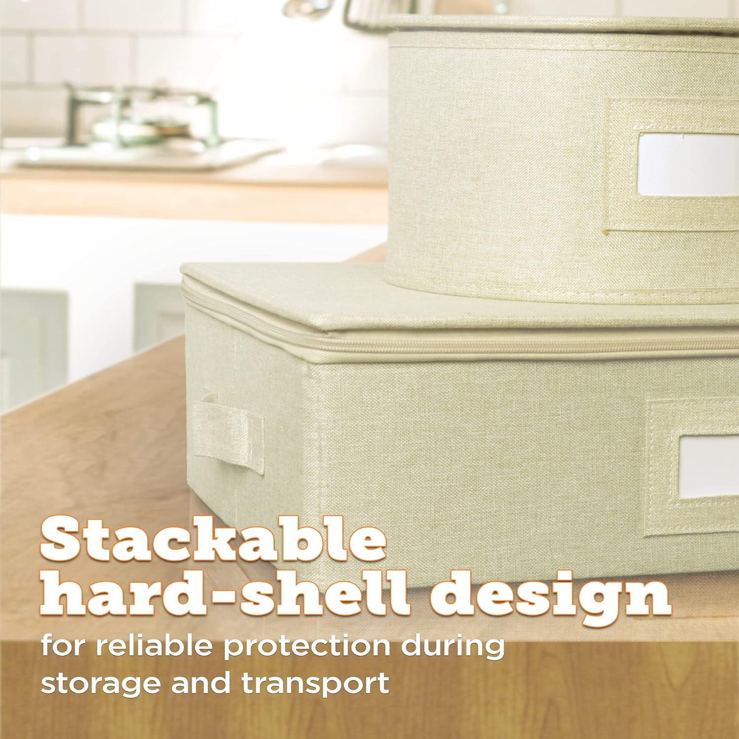 storageLAB Cup and Mug Storage Containers, Hard Shell Storage Case with Felt Dividers for Cups, Mugs, Dishes, and Glasses, Ideal for Kitchen Organizing and Moving Supplies - 1 Pack, Cream