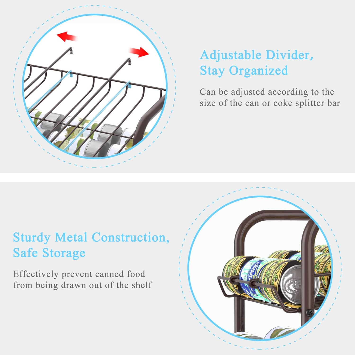 - 【Perfect Size】 - The can rack size is 16.89*12.44*35.35. Each tier comes with 2 adjustable dividers, which can help you sort and manage cans and beverages and keep the storeroom/cabinet/pantry in order.