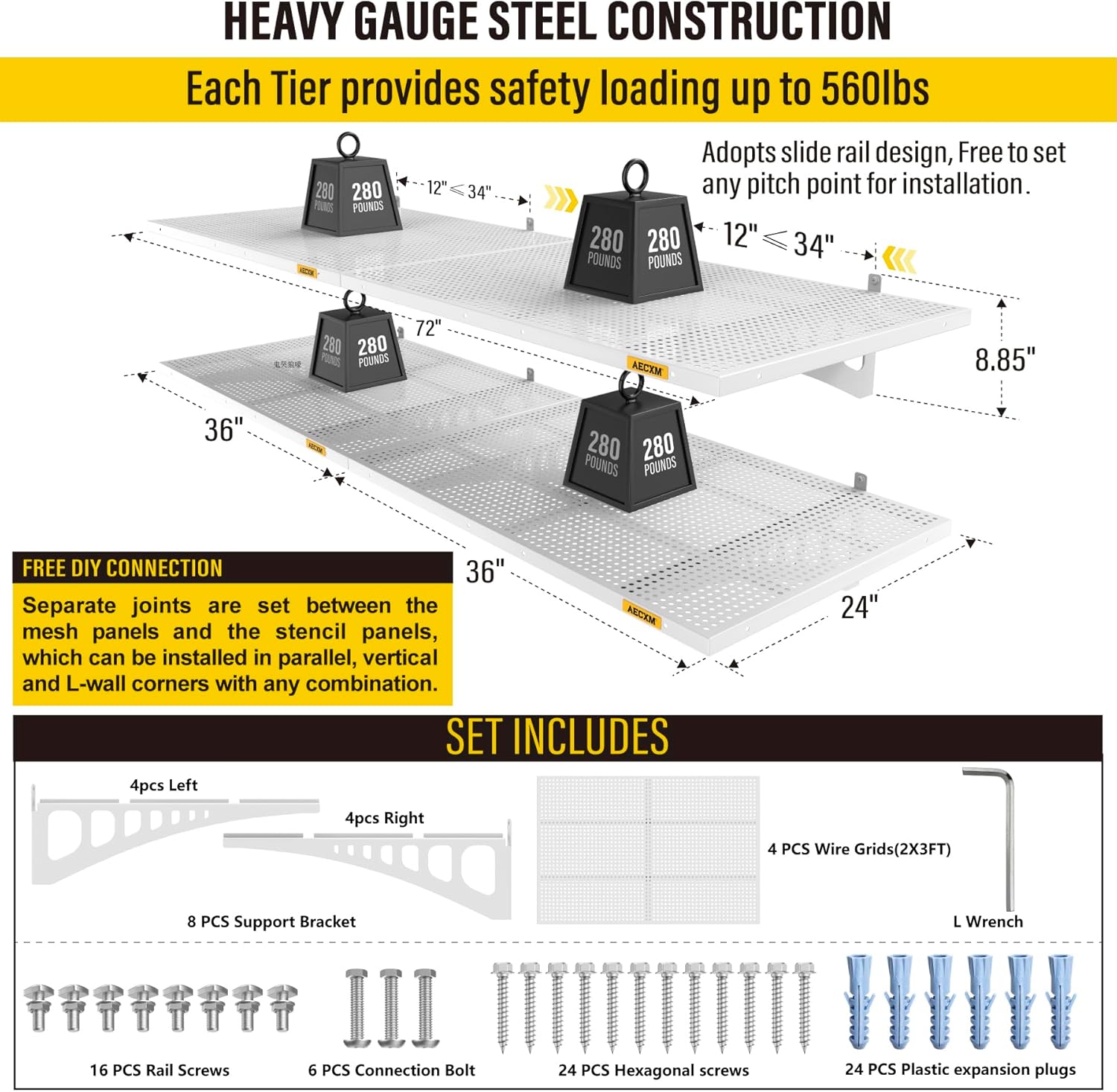 - Premium Craftsmanship: This garage wall shelving is crafted from a single steel sheet, precision-stamped and folded for strength. Unique high-density hole design enhances functionality while delivering a sleek, modern aesthetic