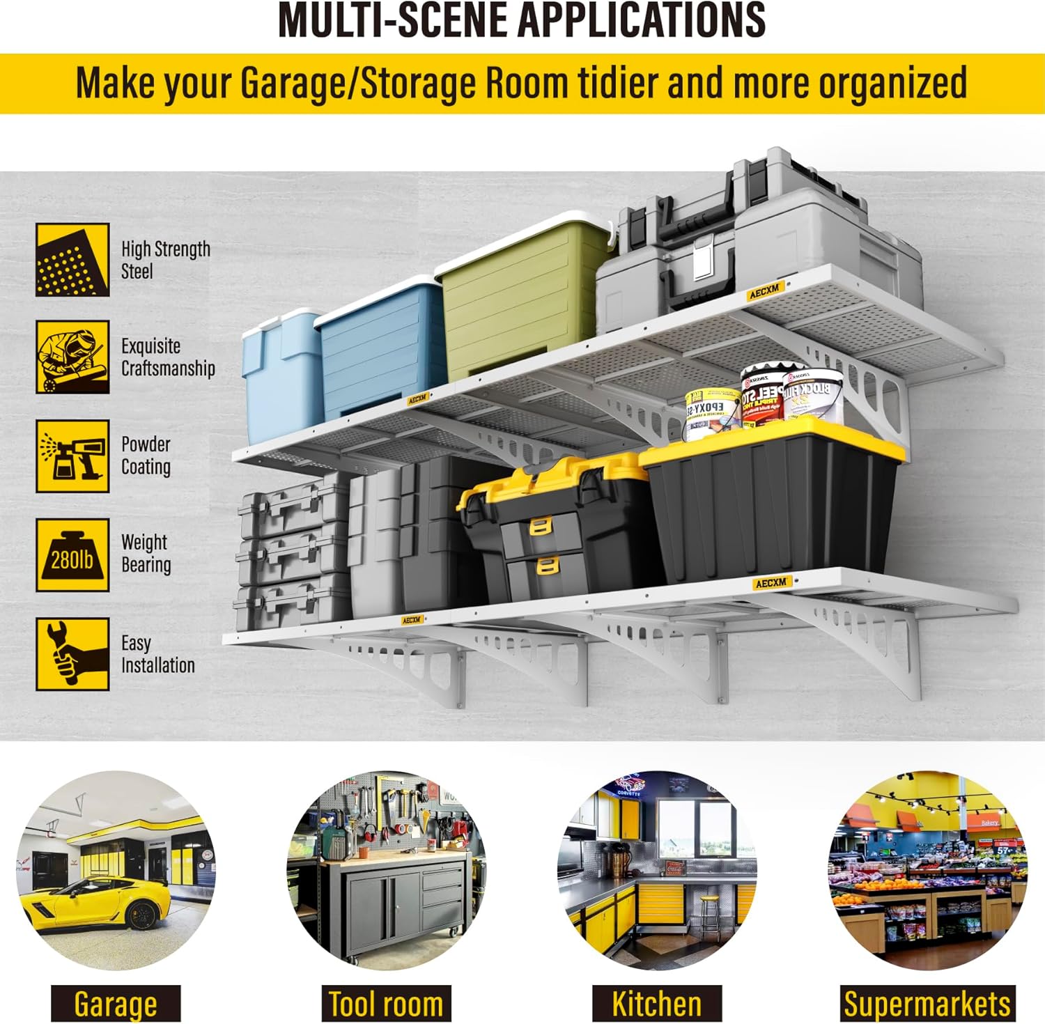 - Easy Installation: Includes high-quality screws and a detailed instruction manual, allowing one person to effortlessly complete the setup. This 2x3ft garage shelf wall mount offers ample storage space for your garage, kitchen, or pantry, keeping everything organized and within reach