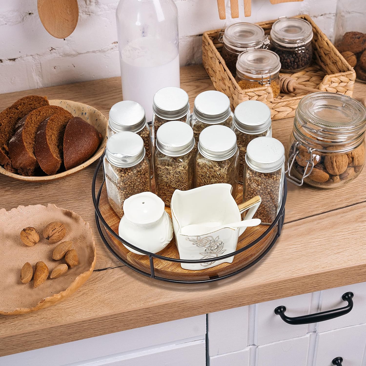 - Dimension:Product size (including base): 9" x 2.5", iron frame edge height: 1.8". Sized to fit condiments, spices, baking supplies.Raised outer edges keep items in place while spinning