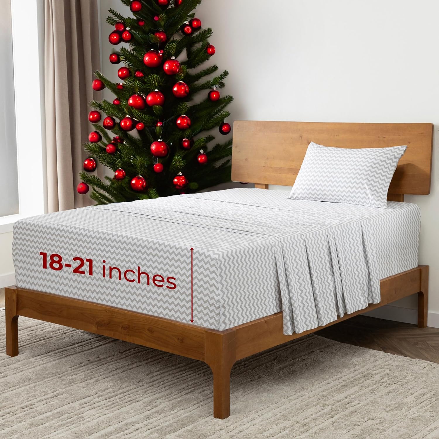 Mellanni Extra Deep Twin Sheets - 3 PC Iconic Collection Bedding - Hotel Luxury, Ultra Soft, Cooling Bed Sheets - Wrinkle, Fade, Stain Resistant (Twin, Chevron Gray)