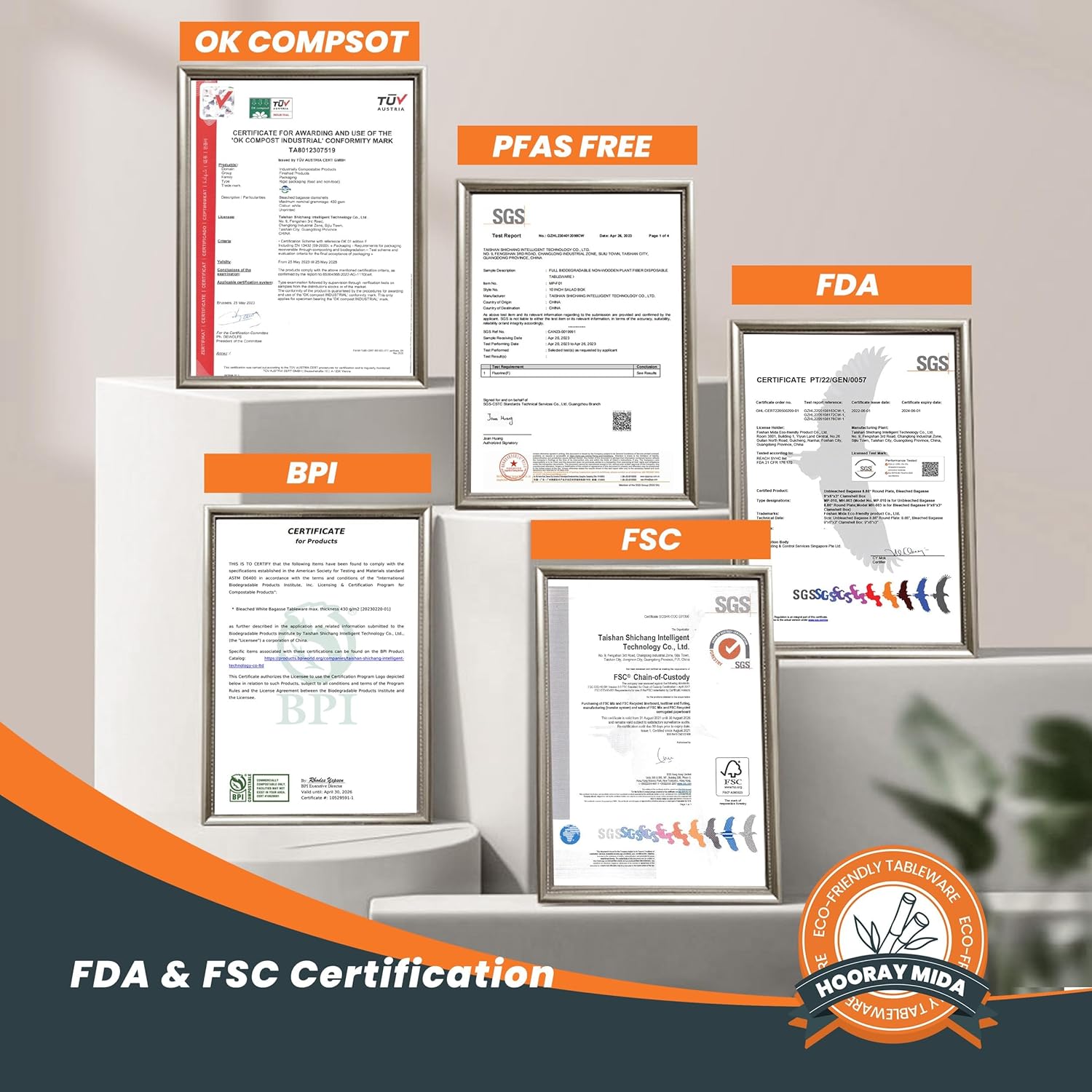 - ECO-FRIENDLY AND HEALTHY PLATES: Our BPI-certified 100% compostable paper plates are made from biodegradable bagasse. Pure and natural dinner plates provide you more safety guarantee. And these recyclable disposable plates can de decompose to nature in just 90 days.