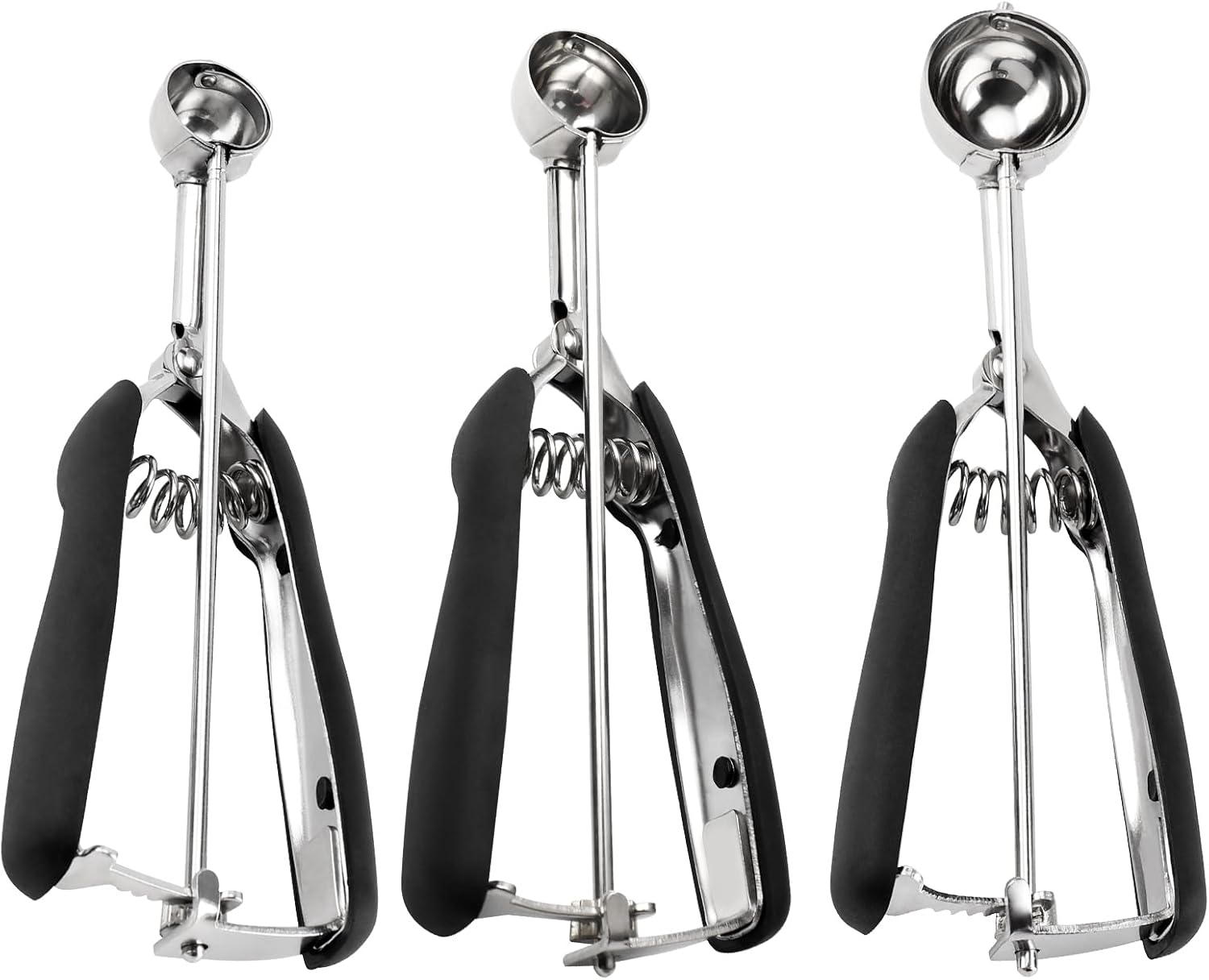 Small Cookie Scoop Set - 3 PCS Include 1 tsp / 2 tsp / 3tsp Cookie Dough Scoops, Cookies Scoops for Baking, Made of 18/8 Stainless Steel, Good Soft Grips, Quick Trigger Release