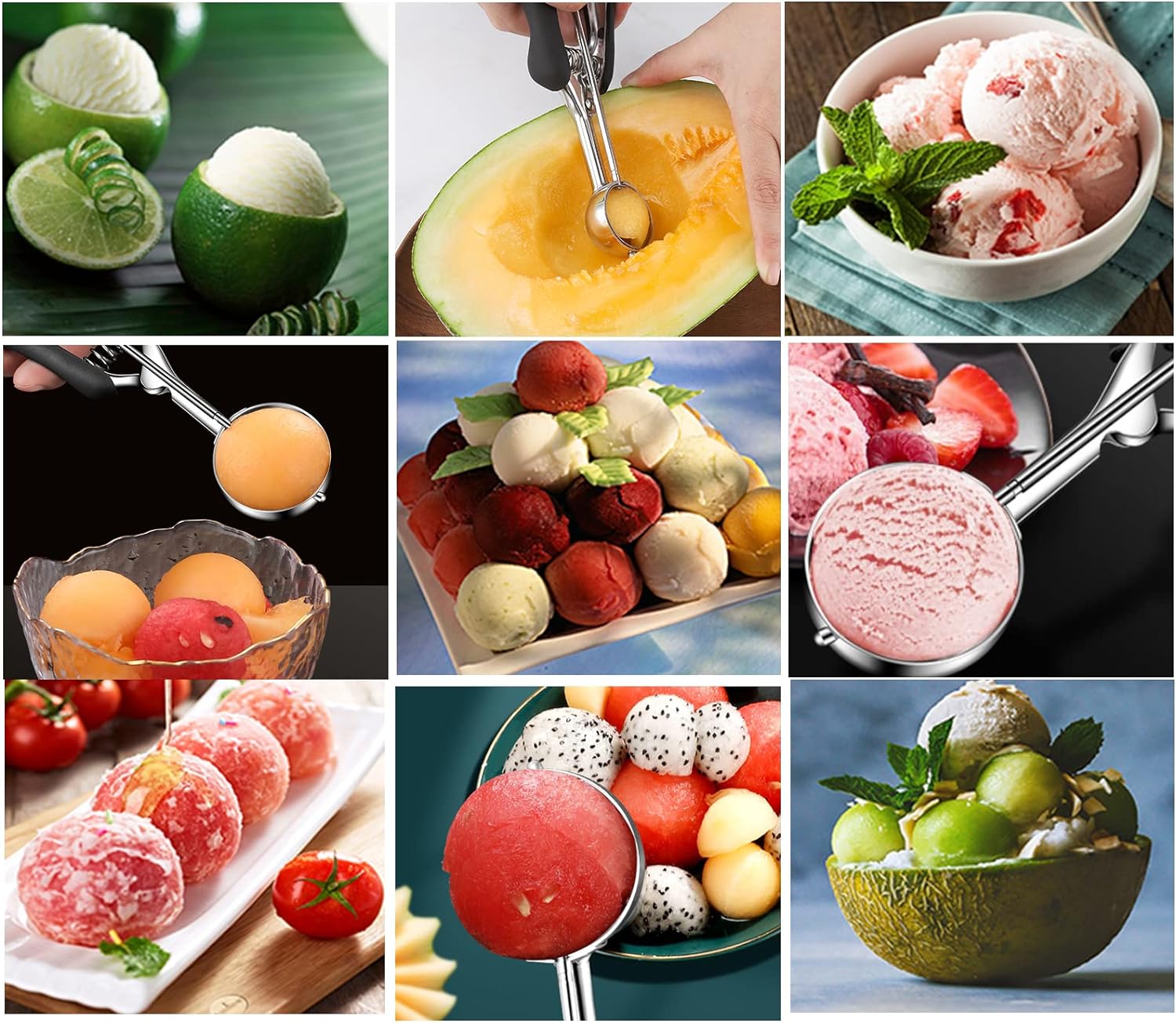 - Easy to Use: Easily make beautiful melon balls, sorbets, meat, fruits and delicious muffins, cupcakes, candy and many other round foods for healthy meals. It is suitable for scooping up and laying down ice cream, biscuit dough, meatballs, fruit balls, and also very suitable for holding pet food.