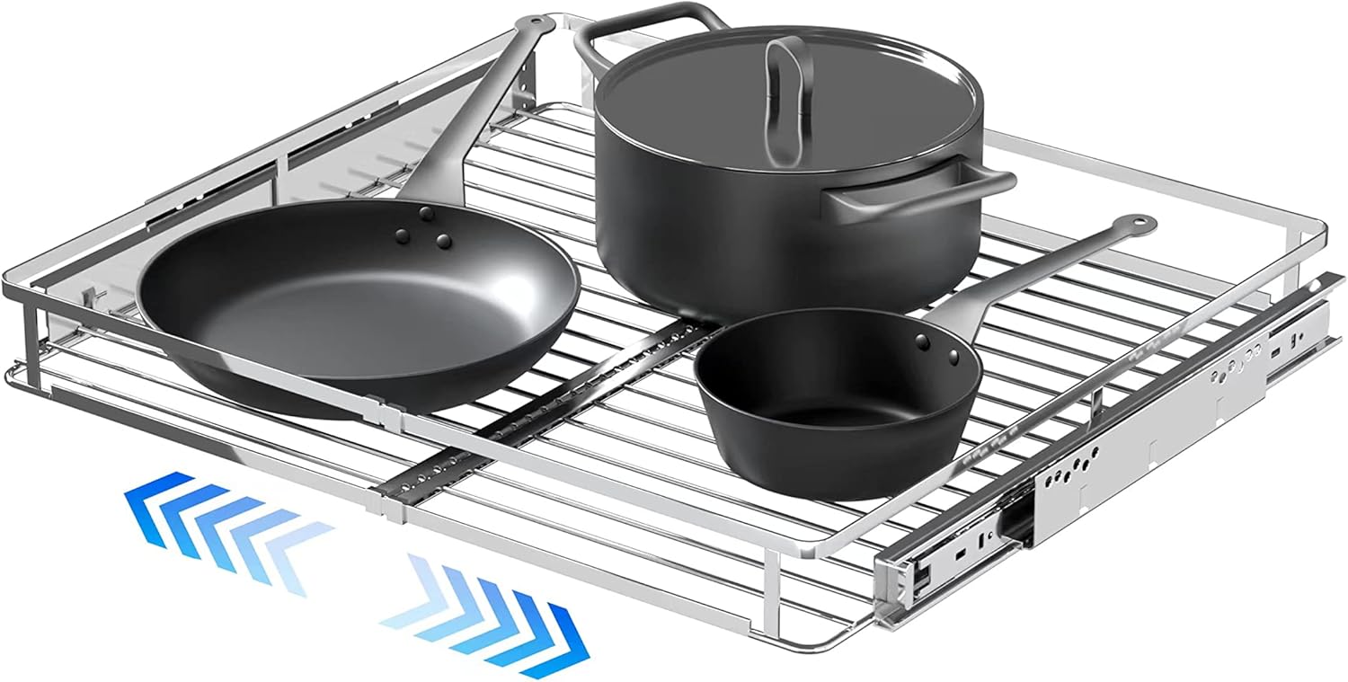 - ✔【High Quality Material】The pull out drawers for kitchen cabinets is made of stainless steel, which can directly contact tableware and food, and is very safe, waterproof and rust proof; Stainless steel metal pull out drawers for kitchen cabinets is more durable and more supportive than ABS plastic basket; Simple and low-key colors can match with cabinets of various styles, suitable for a variety of family styles