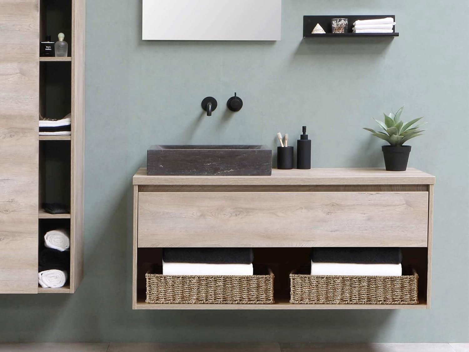 - When not in use, nest the wicker baskets for toilet paper and stow them away for compact storage.