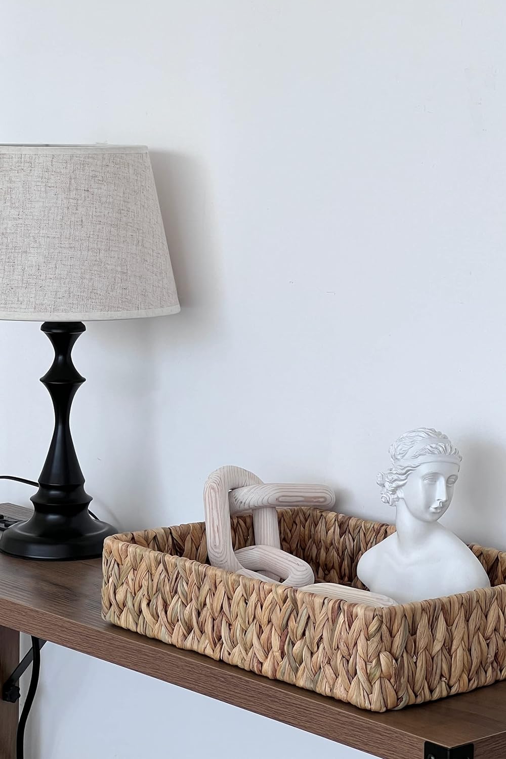 StorageWorks Large Water Hyacinth Tray for Bathroom, Wicker Storage Basket for Shelves, Handwoven Natural Hyacinth Baskets for Organizing, 2-Pack