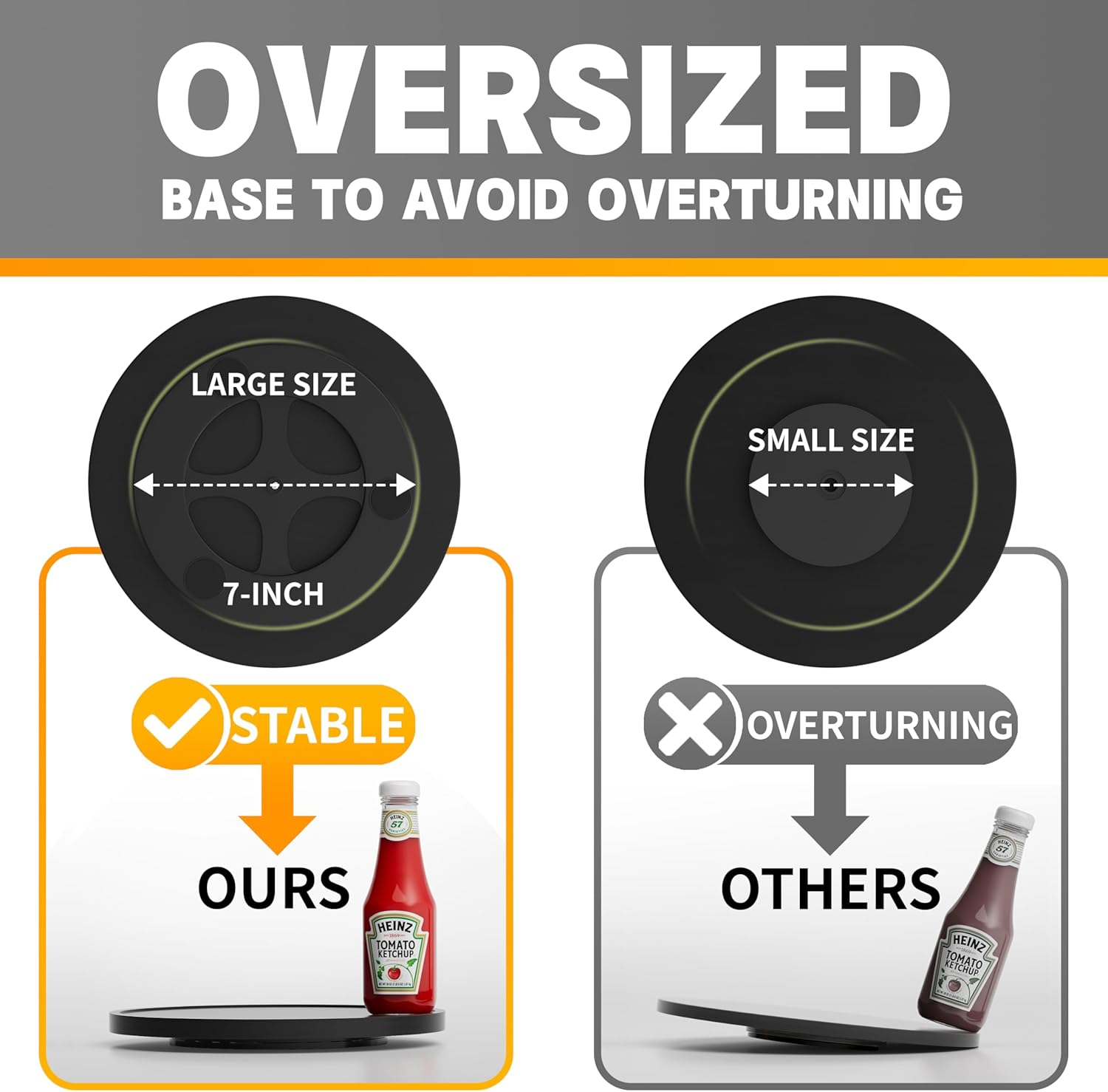 - ✔️【UPDATED DESIGN】Higher quality swivel base will enjoy the ultimate in comfort and convenience that a smooth and silent rotation will bring, compared to other products, our bottom swivel section (7") is larger to effectively prevent dumped items. Will not be like other lazy Susan, because of uneven gravity makes it difficult to rotate.