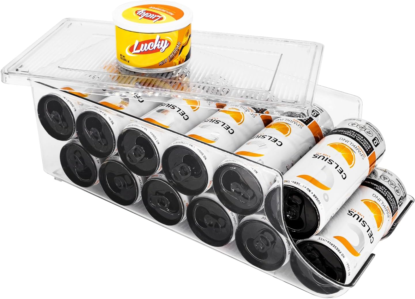 - Stackable & Space-Saving: Stackable bins with a sealed airtight lid keep cans fresh, protected from dust and odors, and prevent spills. The lid top also doubles as extra storage, maximizing refrigerator space