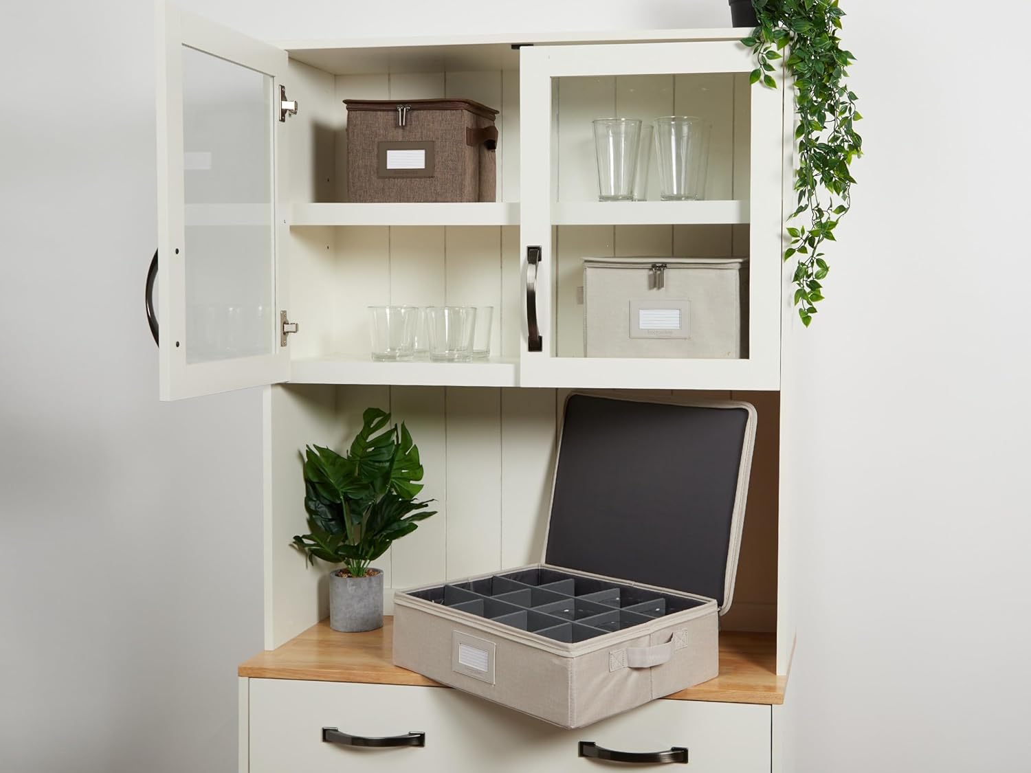 Covermates Keepsakes Dish Storage Box - Stackable, Reinforced Handles, China Storage, Beige Heather