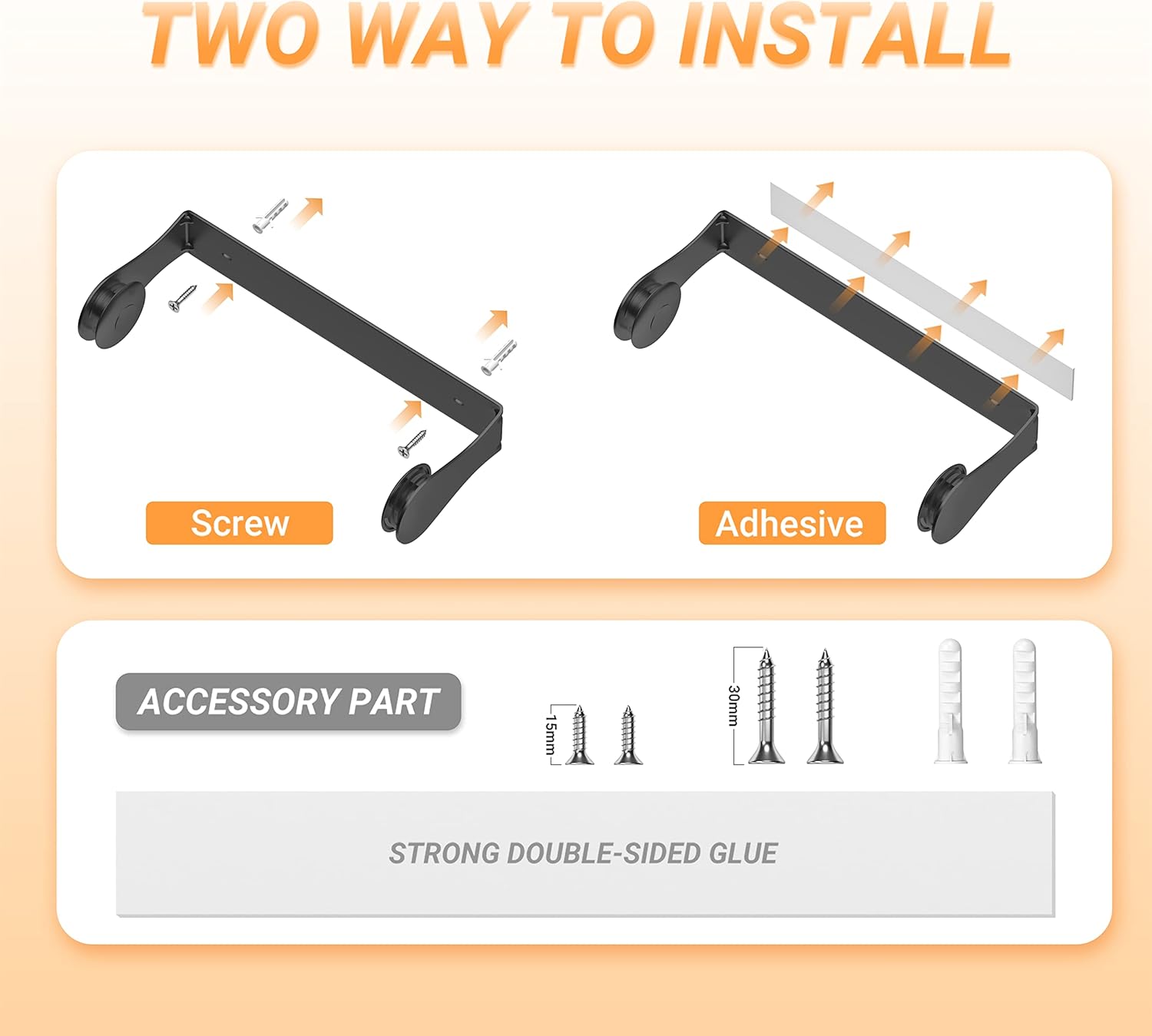 - TWO WAY TO INSTALL: Paper towel holder wall mount apartment decor has two way to install, Adhesive or Screw. Each set come with adhesive, screw and instructions. You could choose the appropriate installation method according to your wall state.
