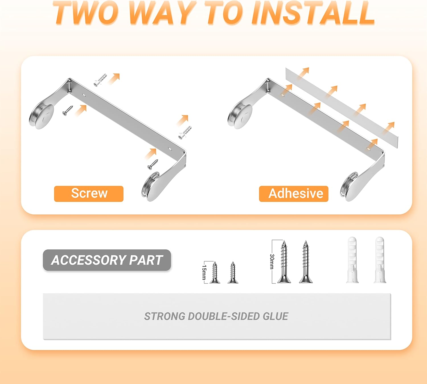 - SPACE-SAVING PAPER TOWEL HOLDER: Stick on kitchen accessories paper towel holder can be installed in different space vertically or horizontally.Save more space on your counter,perfect for kitchen,bathroom,workshop,craft room or any other space which you need to access to paper towels.