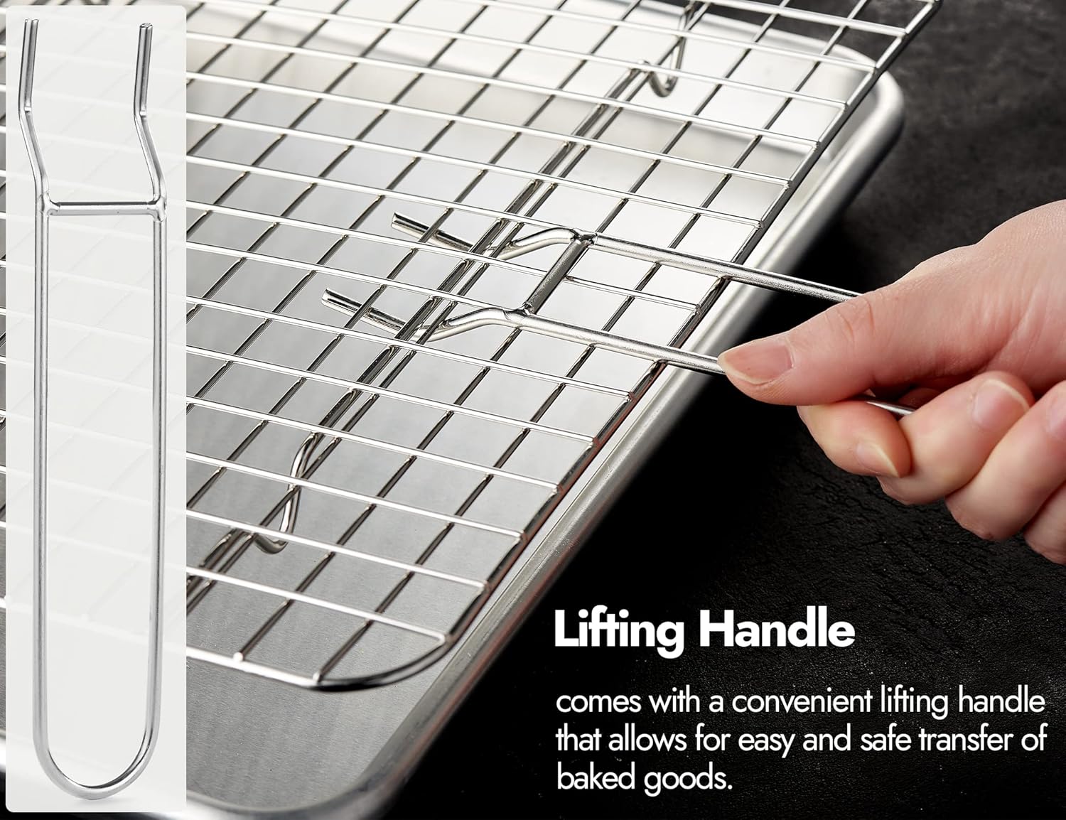 CURTA 2 Pack 16.8" X 24.4" Chef Cooling Rack,NSF Listed 18/8 Stainless Steel Oven Safe Grid Wire Cookie Cooling Racks for Baking & Cooking - Commercial Grade comes with Lifting Handl