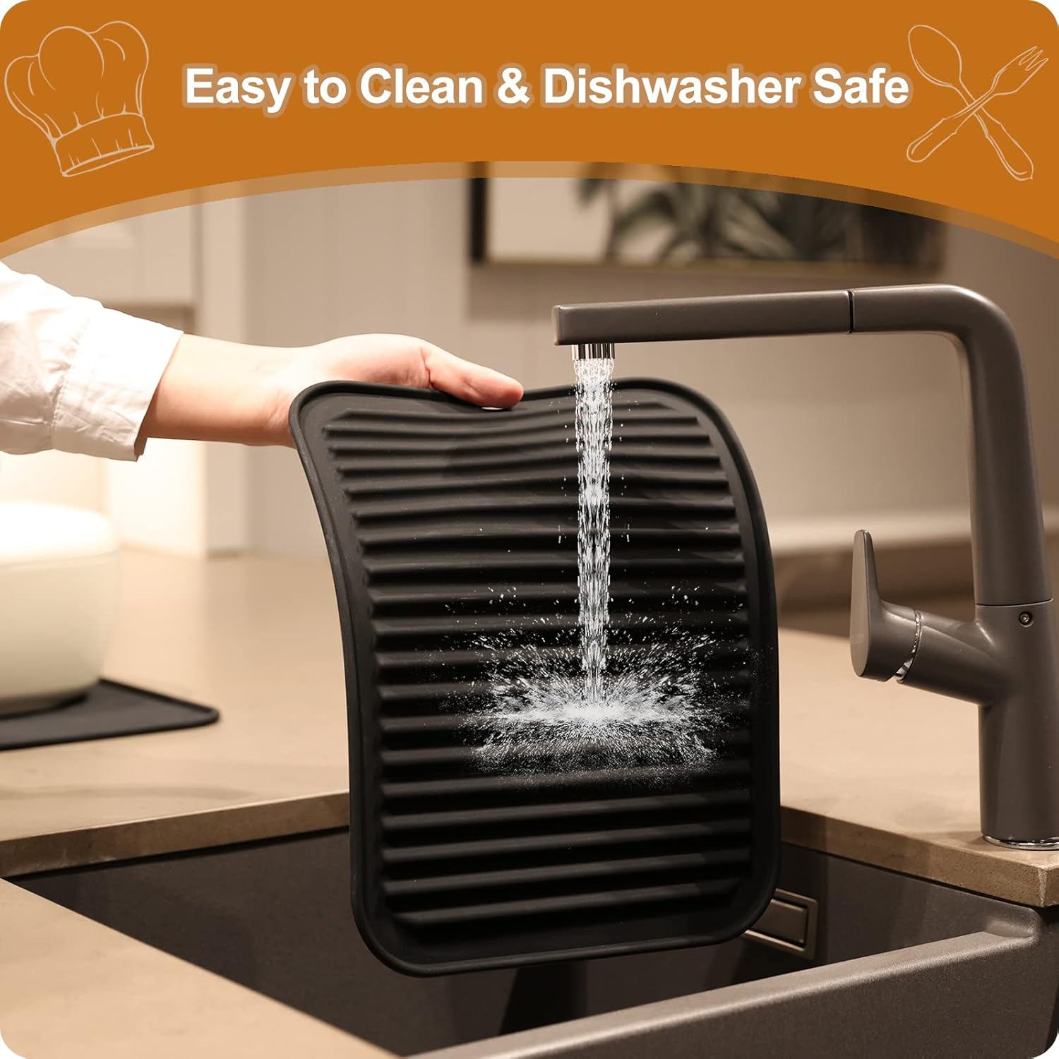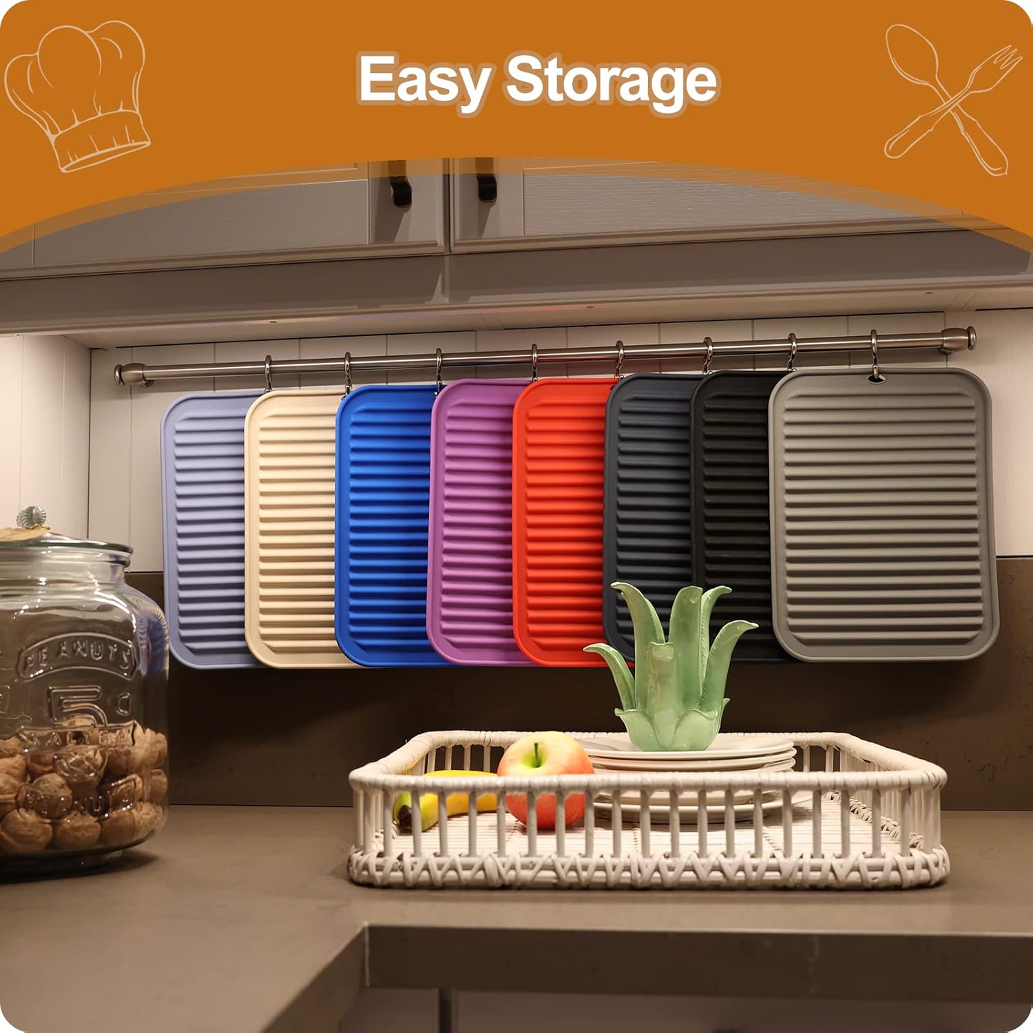 - EASY TO CLEAN & DISHWASHER SAFE - These trivets for quartz countertops are waterproof, plus stain and odor resistant. These kitchen hot pads are safe to pop in the dishwasher. It is non-stick and easy to clean. Roll up or hang on hook, save space. Experience a more convenient kitchen environment with these silicone trivet.