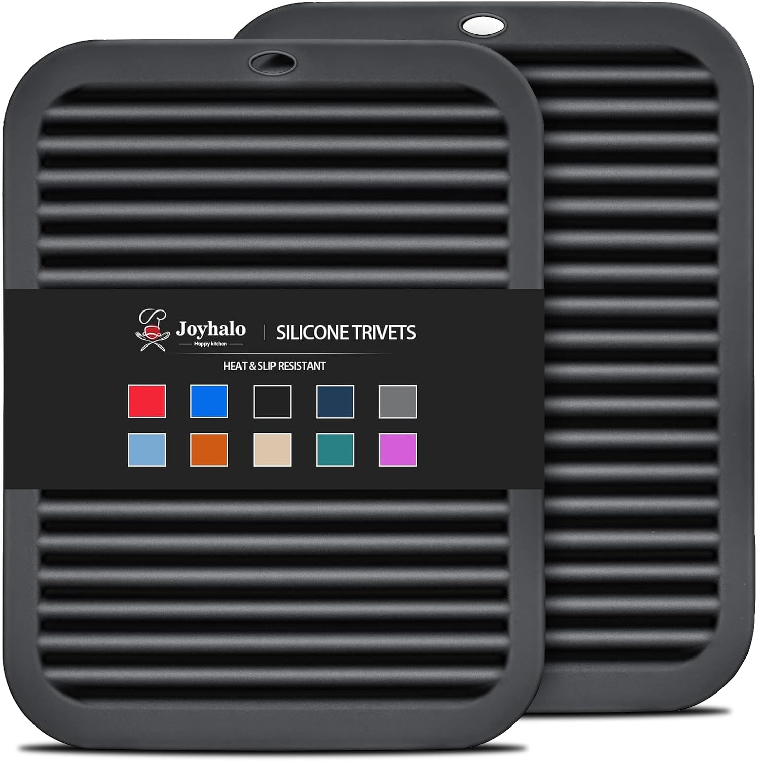 Joyhalo Trivets for Hot Dishes - Hot Pads for Kitchen 9'' x 12'', Silicone Trivets for Hot Pots and Pans, Hot Plates to Protect Table, Quartz Countertops Heat Resistance to 480°F, Set of 2, Black