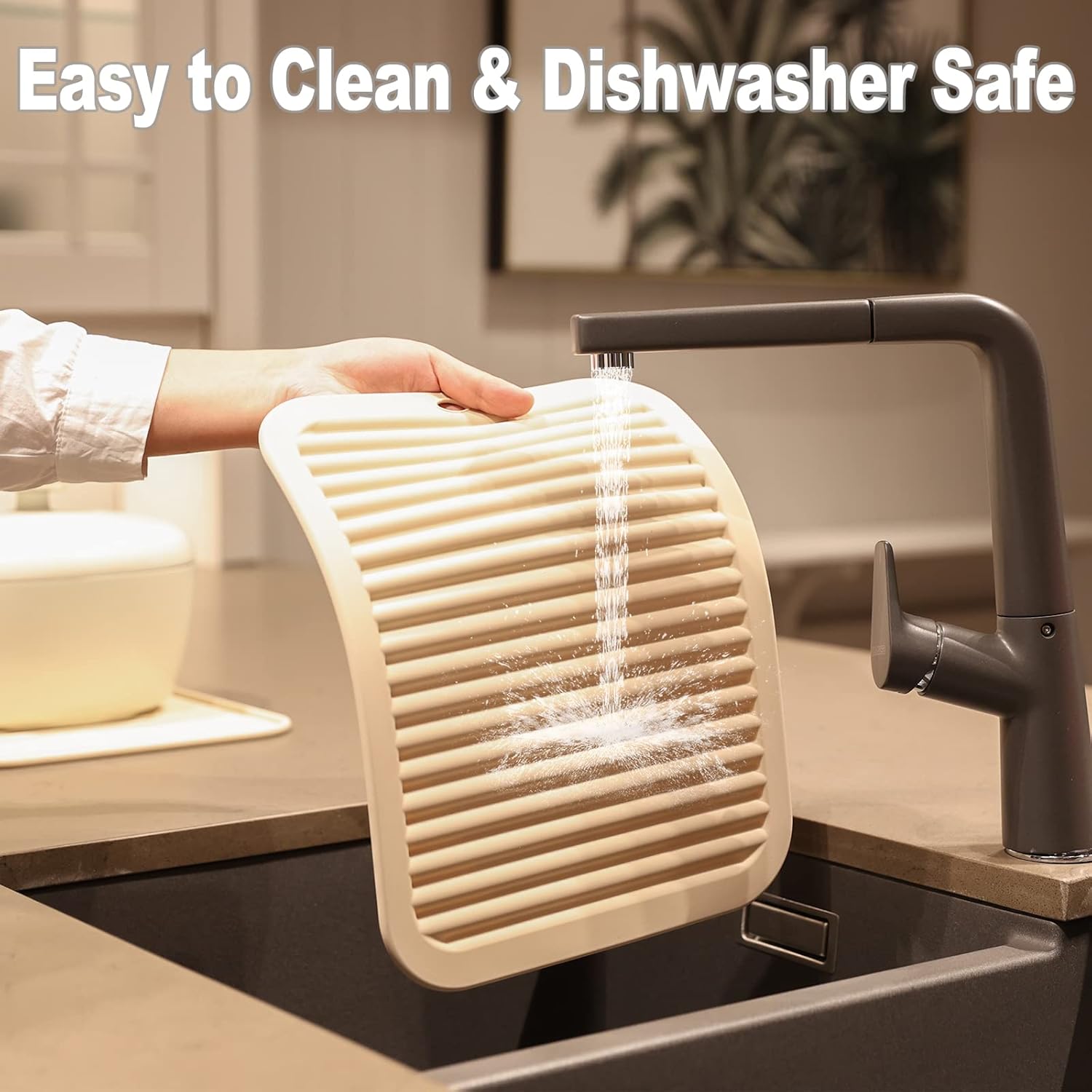 - EASY TO CLEAN & DISHWASHER SAFE - These trivets for quartz countertops are waterproof, plus stain and odor resistant. These kitchen hot pads are safe to pop in the dishwasher. It is non-stick and easy to clean. Roll up or hang on hook, save space. Experience a more convenient kitchen environment with these silicone trivet.