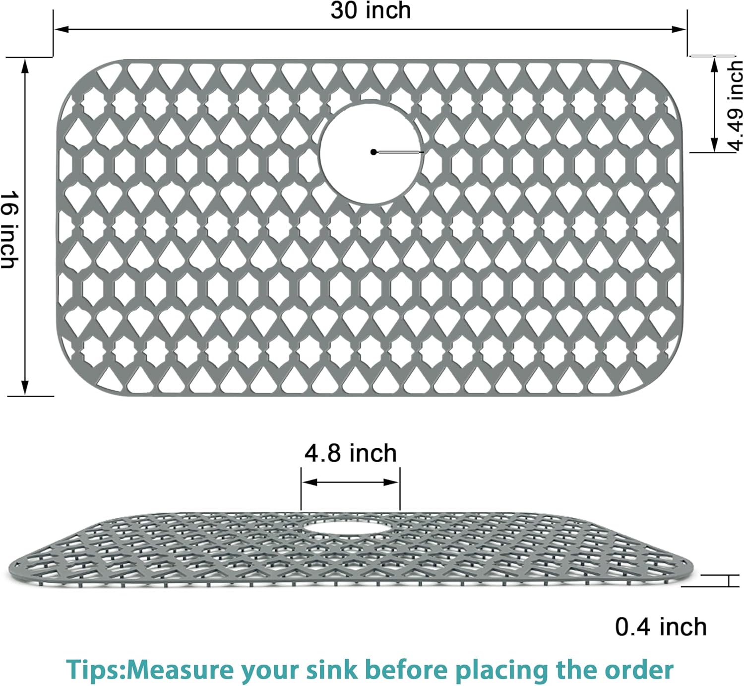 - Large Size & Flexiable - The size of our silicone sink mat is 30 ×16 inches. The silicone sink mat is flexiable that easy to fit the bottom of the kitchen sink. The silicone sink mat not only can be sink protectors for kitchen sink, but also can be a drying mat or dish mat. It is an essential item for the daily cleaning of the kitchen.