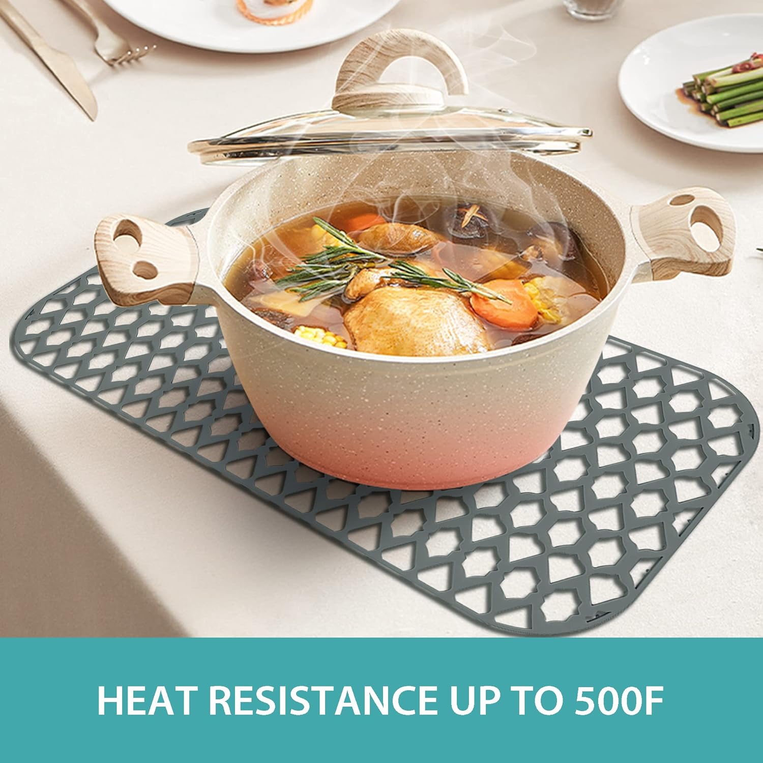 - Heat Resistant & Elastic Silicone Material - Because of the high melting point of silicone material, Our kitchen sink mats can be used to hold high-temperature tableware. Of course, the soft silicone material can form effective protection for bottom of the kitchen sink and table surface, especially when children use tableware, which can prevent many accidents.