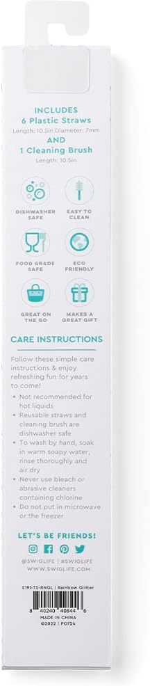 Swig Life Reusable Straws Rainbow Glitter Straw Set & Cleaning Brush, Each Straw is 10.25 inch Long (Fits Swig Life 20oz Tumblers, 22oz, and 32oz Tumblers)
