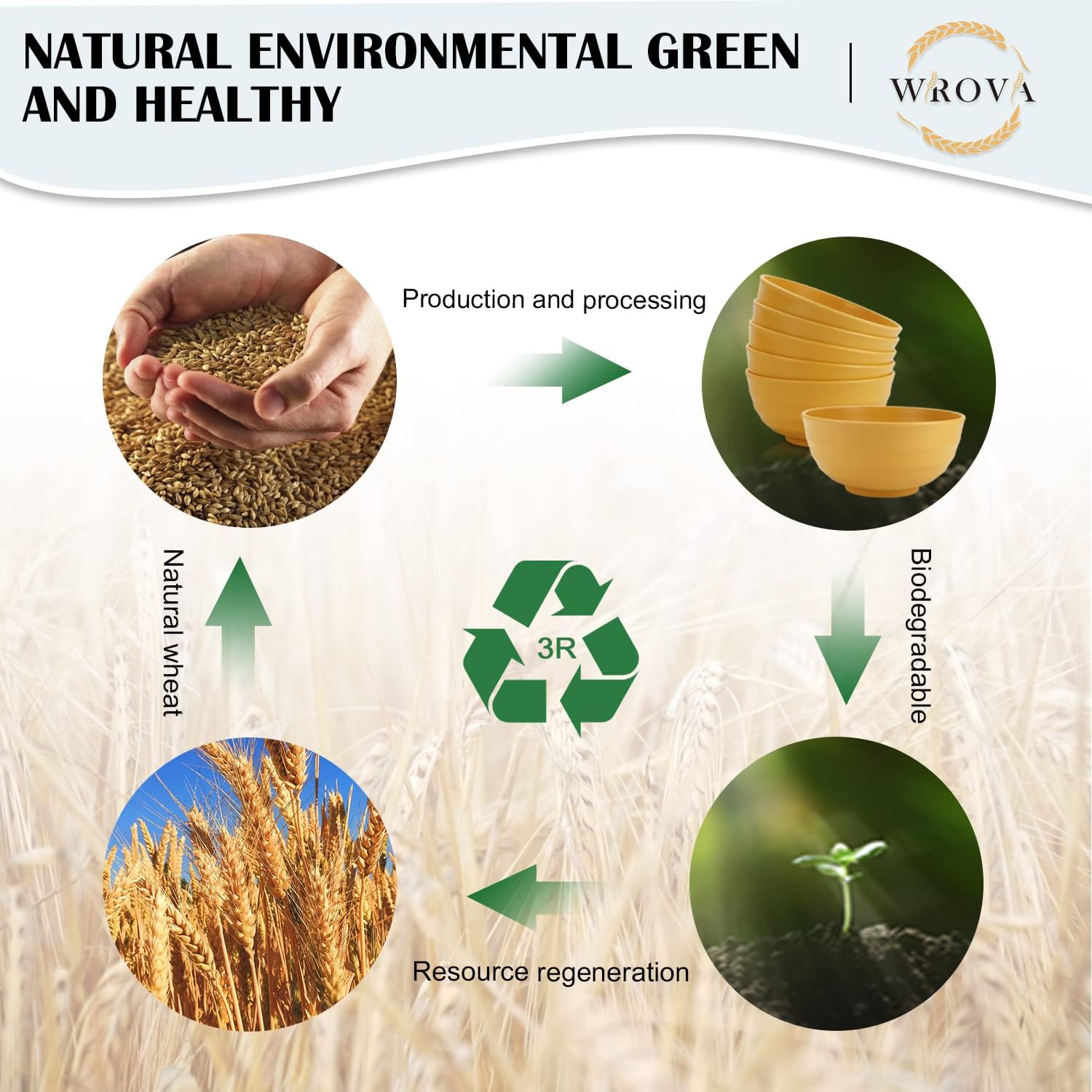 - 【Wheat Straw Materials】These bowls set is made of natural organic wheat straw fiber, the material is non-toxic,odorless.There is no plastics and harmful chemical materials.Very healthy and beautiful tableware for your family.
