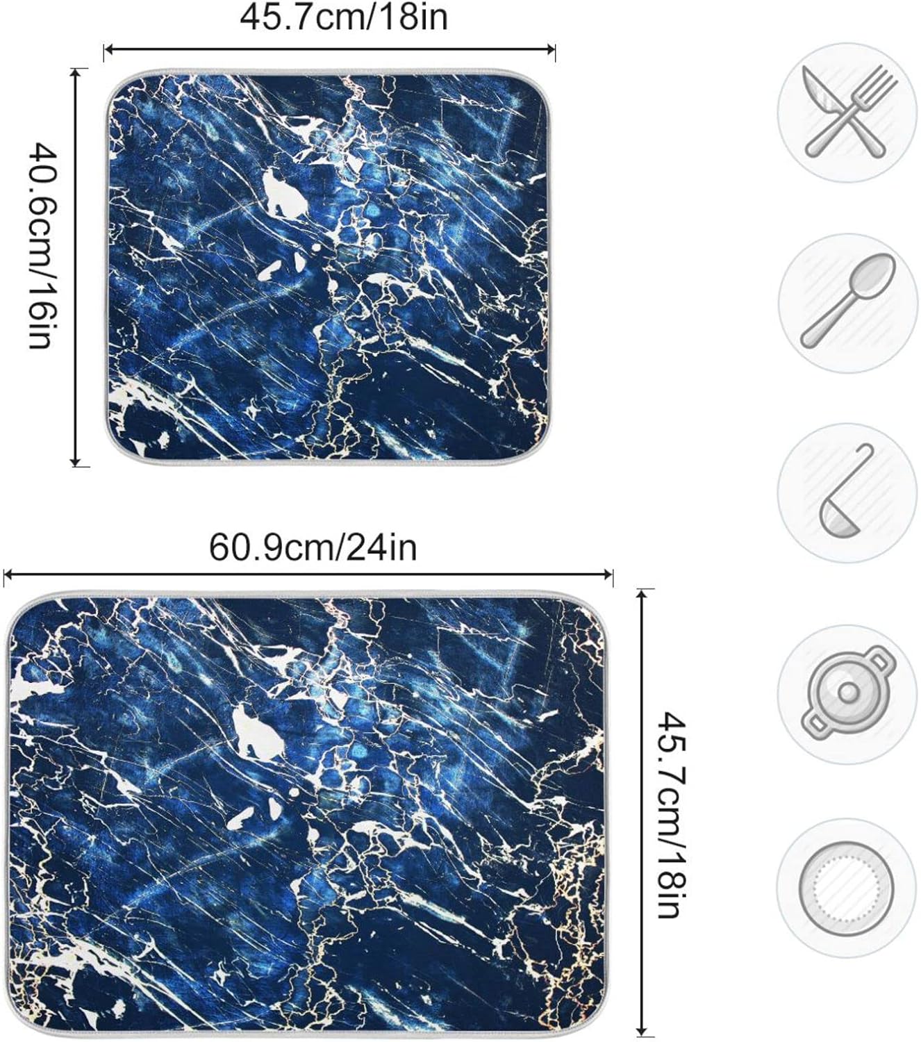 Super Absorbent Dish Drying Mat, Microfiber Fast-Drying Dish Mat, 24" x 18", Kitchen Dish Drying Pad, Marble Black Navy Blue