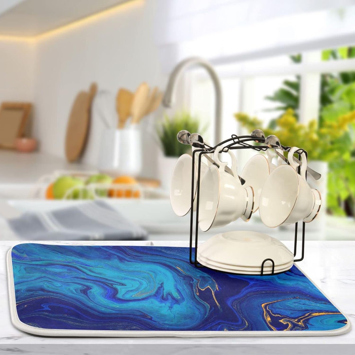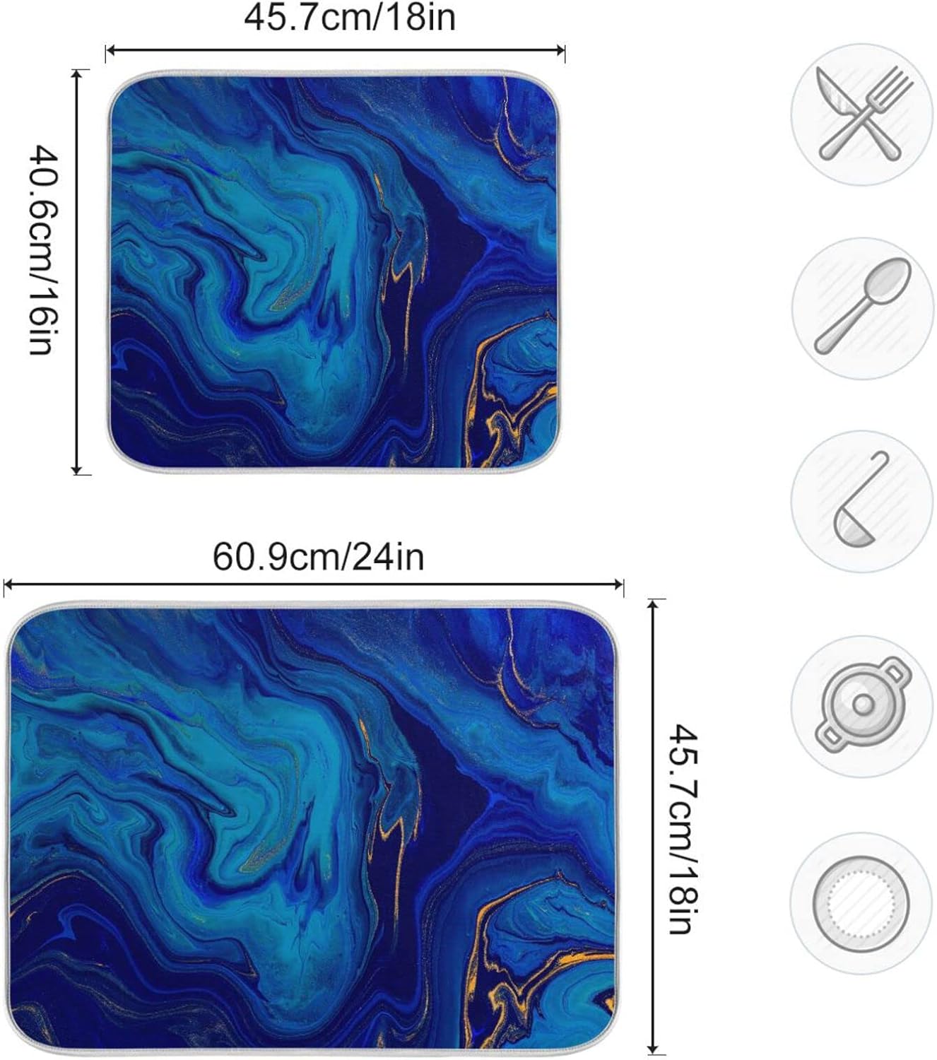 Super Absorbent Dish Drying Mat, Microfiber Fast-Drying Dish Mat, 24" x 18", Kitchen Dish Drying Pad, Navy Blue Gold Marble