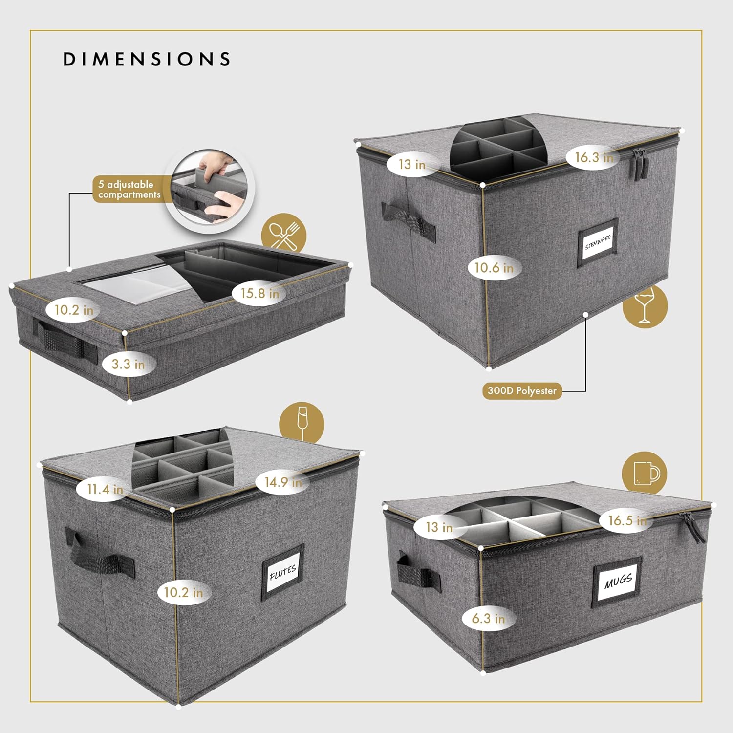 - ššš«š¬ššš¢š„š šš”š¢š§š šššØš«šš š: Homelux Theory's champagne glass storage containers has a multipurpose design with wide-ranging applications, making them highly suitable as stemware storage containers, drinking glasses storage organizer, crystal glass storage containers, or dishes packing box for inherited heirlooms. These plates storage are the most ideal dish storage box with handles as it protects your precious drinkwares keeping them safe during your travel.