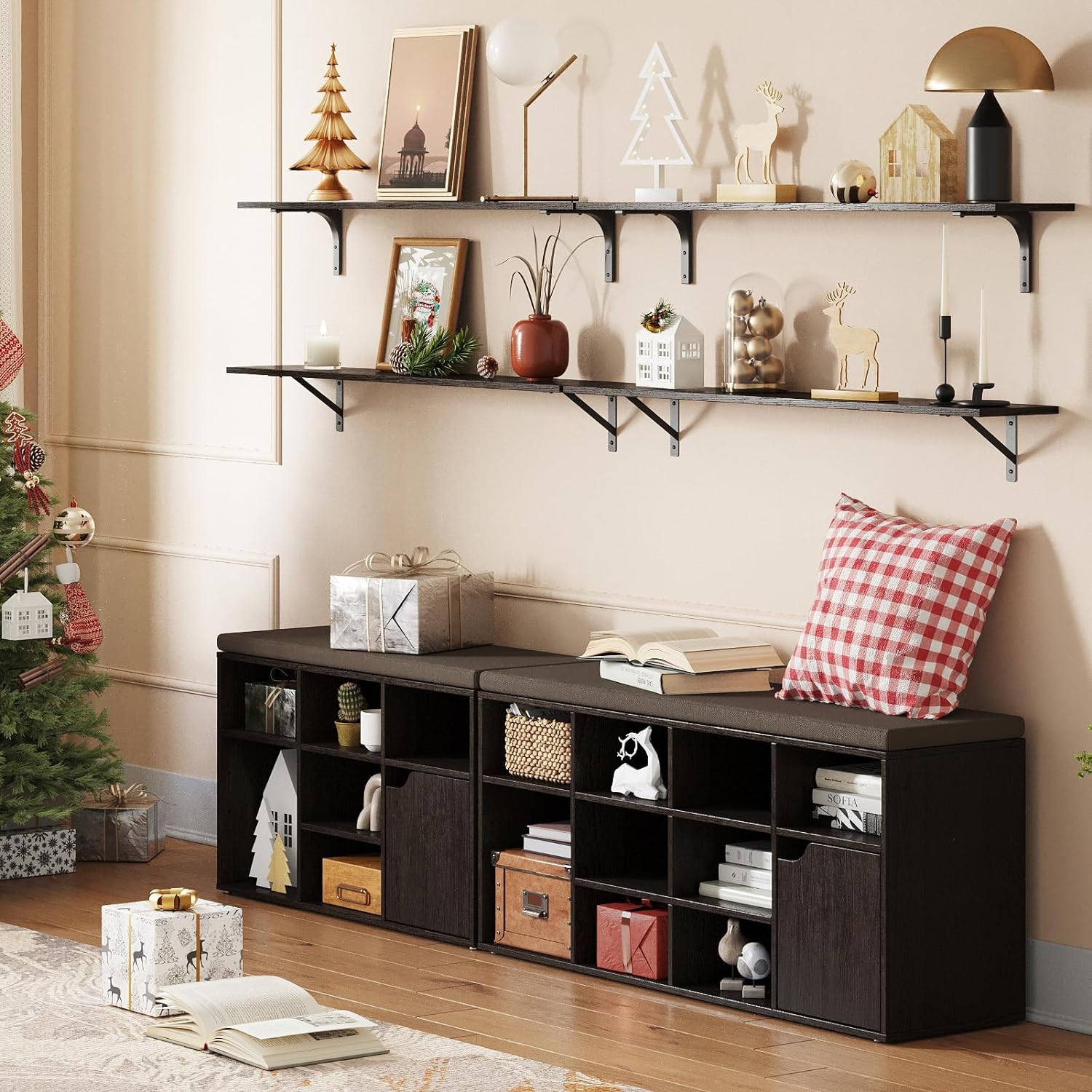 - 【Wide Application】Extra long shelves for wall storage is gospel of small family to enjoy the tranquility of home. Large floating shelves allow you to store books, games, decorations, plants, towels, photos, collectibles etc. Even to be an ideal play area for your cats. Create additional storage in living room, bathroom, bedroom, closet, balcony, study, kitchen, laundry, bar area, pantry and office
