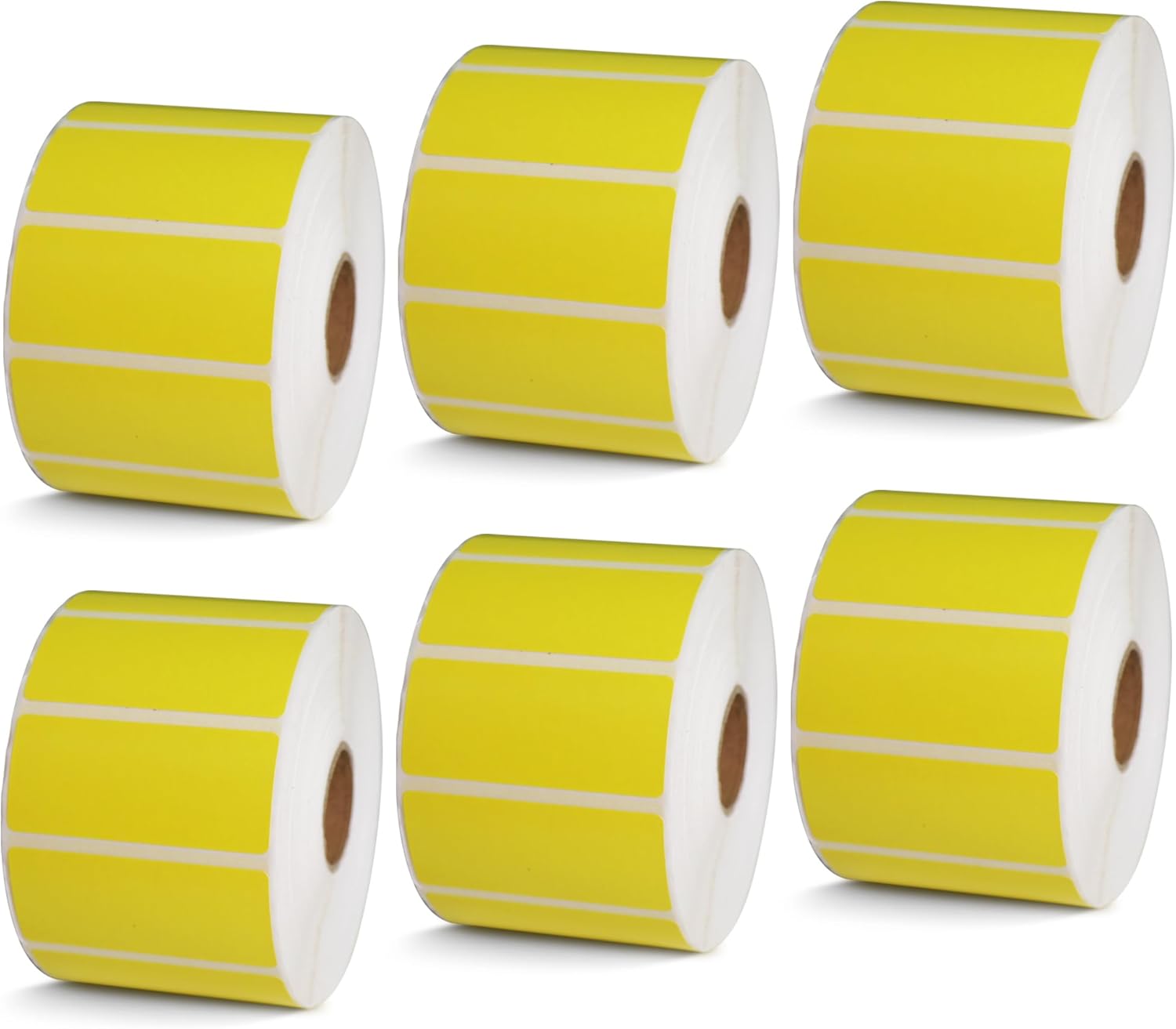 BETCKEY - 2.25" x 1" File Folder & Multipurpose Labels Compatible with Zebra & Rollo Label Printer,Premium Adhesive & Perforated[Yellow, 6 Rolls, 9000 Labels]