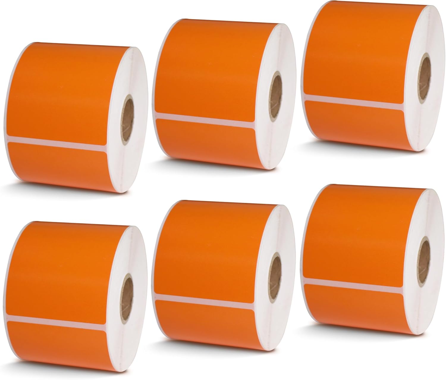 BETCKEY - 2.25" x 4" Multipurpose & Shipping Labels Compatible with Zebra & Rollo Label Printer,Premium Adhesive & Perforated[Orange, 6 Rolls, 2100 Labels]