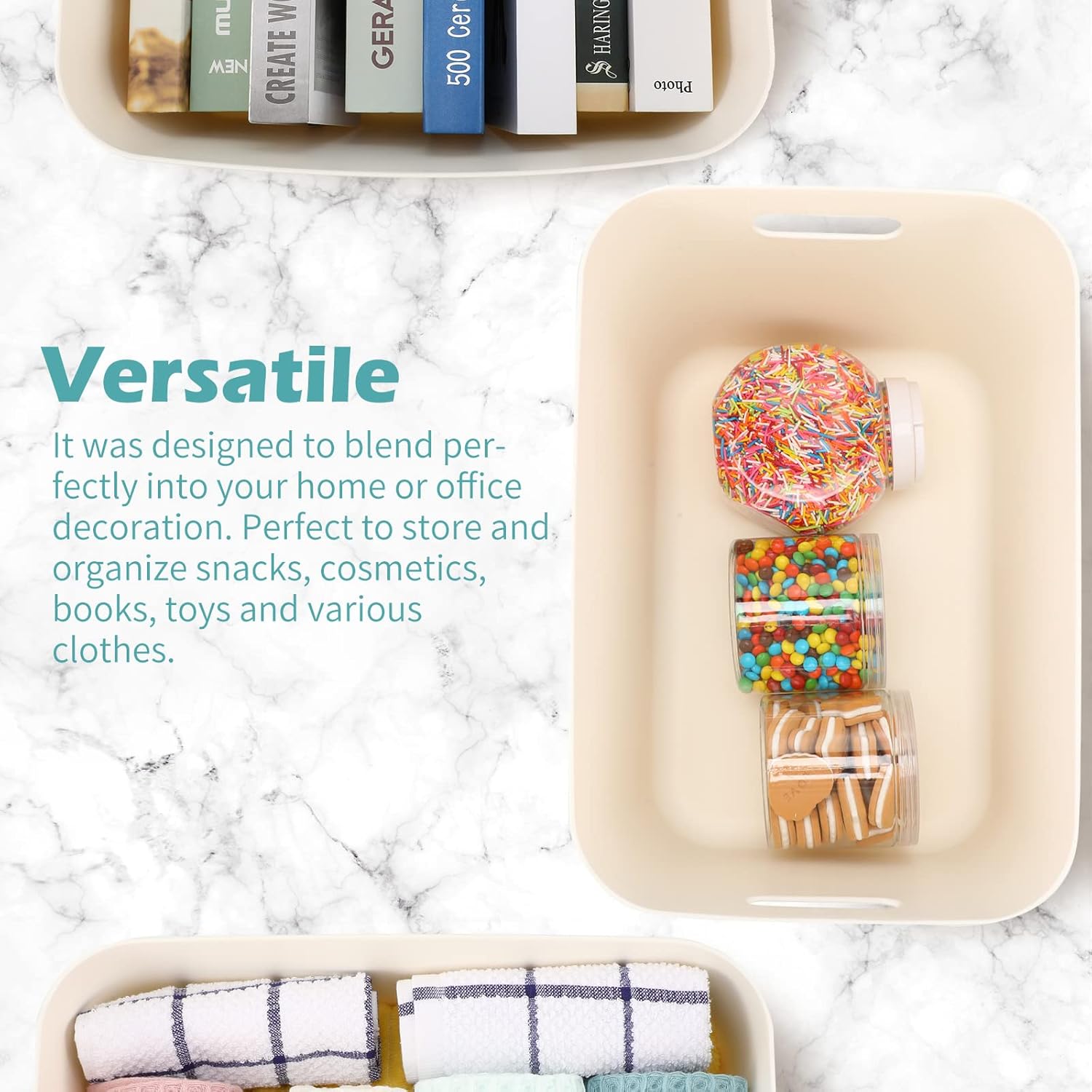 - Wide Range of Use: our stackable white organization baskets are suitable for your home, bedroom, bathroom, kitchen, living room, office or study area, and you can use them to hold small daily sundries, such as snacks, cosmetics, books, toys and various clothes, they can help you a lot