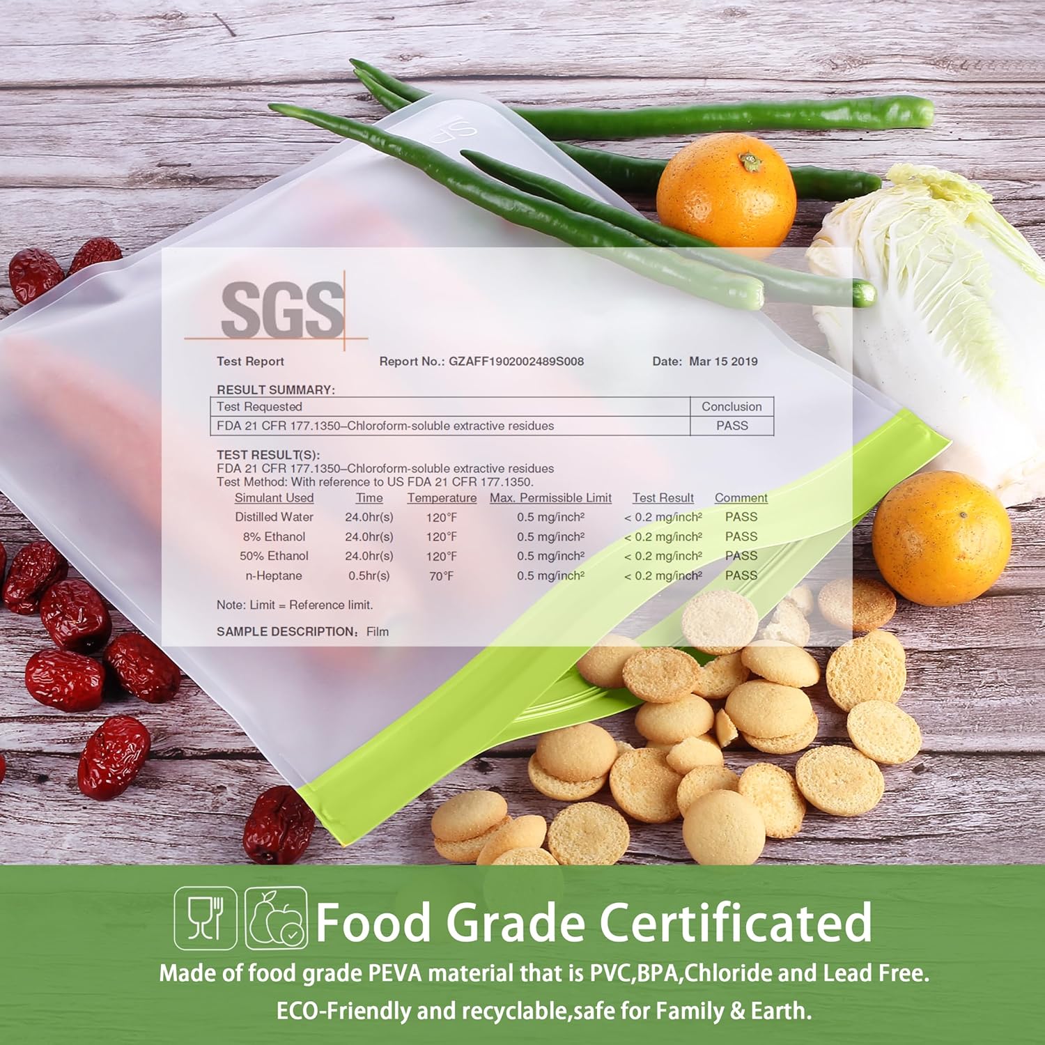 - ăFOOD GRADE MATERIALă Choose SPLF brand for TRULY food-grade reusable storage bags. Made of food-grade PEVA material that is PVC, BPA, Chloride and Lead free. Healthy and safe for family and earth.